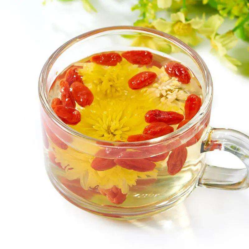 取红枣5~6颗、枸杞适量,洗净略泡,放入壶里煮沸,小火慢熬5分钟,加入少许冰糖,茶温降至40℃以下后也可加入少许蜂蜜。常熬夜、贫血者都适合服用。方中,红枣性温,质润多液,有补气养血、健脾益胃、养血安神、缓和药性、舒肝解郁的功效,能增强肌力、消除疲劳、扩张血管、改善心肌营养,对防治心血管疾病有良好疗效。平时多吃能提升身体元气,增强免疫力。红枣补血作用强,从事体力劳动者及神经衰弱者,用红枣煮汤代茶饮可治疗失眠;它还适合血虚、月经量少的女性,尤其是产妇食用红枣,能补中益气、养血安神。枸杞滋补肝肾、养肝明目。但注意脾胃虚弱者、腹泻患者不宜吃红枣,要将脾胃调养好再吃。红枣、枸杞都属热性补品,如身体火气较大,不建议食用。