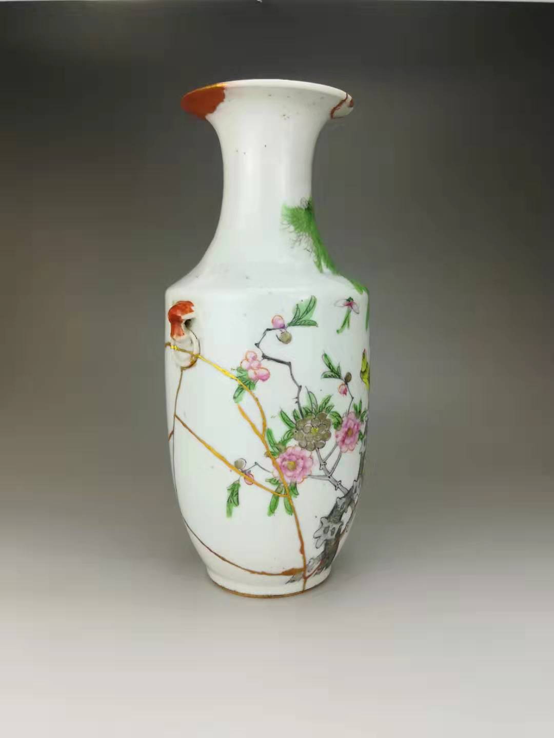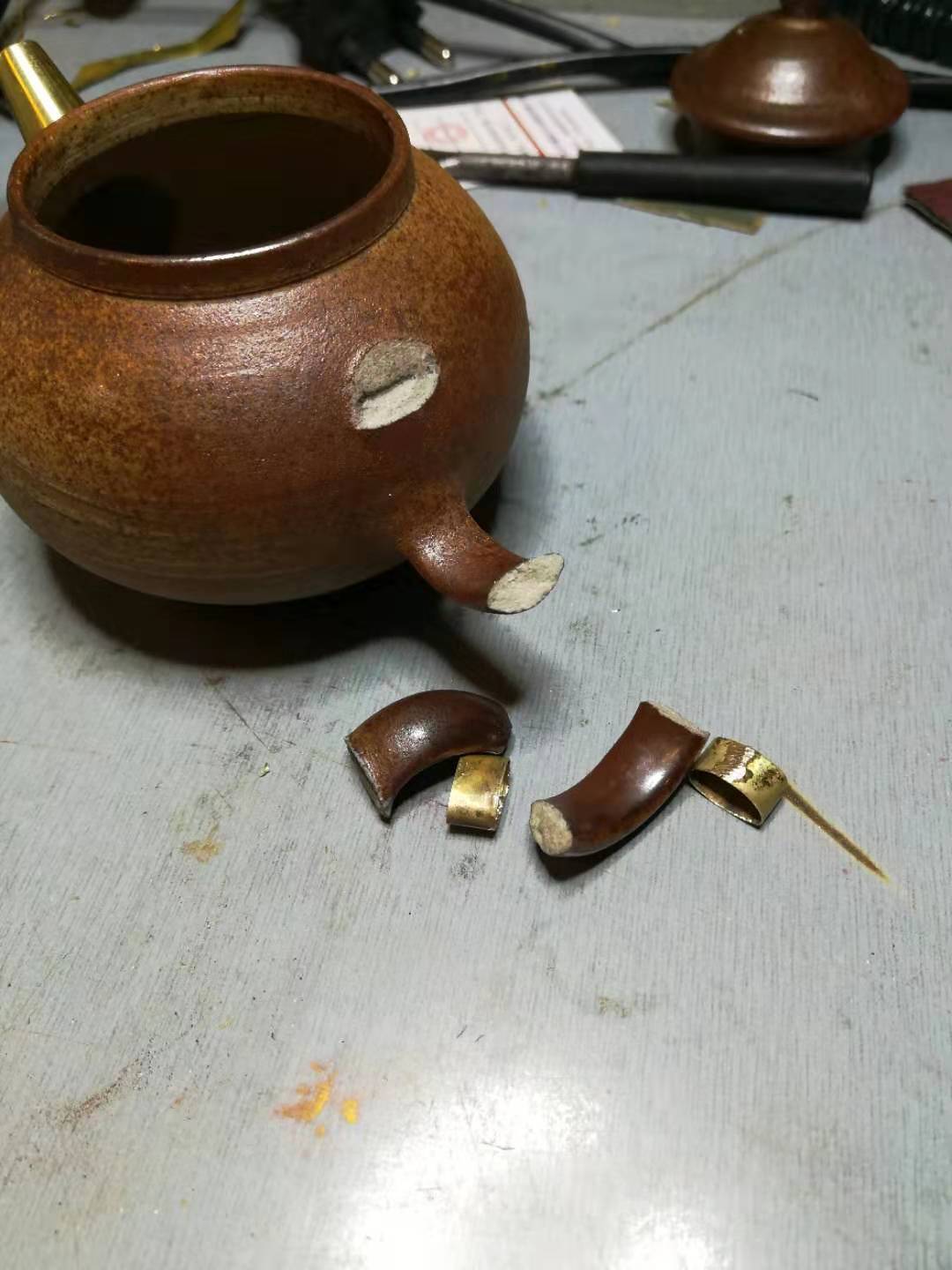 后来某次搬家时,王铁权不慎将这只小瓷杯摔碎。为了修补它,他决定自学锔瓷手艺。由于没有师傅,王铁权只能在古玩市场、博物馆里暗自揣摩,因为悟性高动手能力强,王铁权很快就能上手了。去年春天,为了更上一层楼,王铁权拜国家一级美术大师刘放为师,专门学习锔缮技艺。刘放从小跟随父亲学习锔瓷,对锔缮、篆刻、制扇等均有很深的造诣,在业内颇具威望。