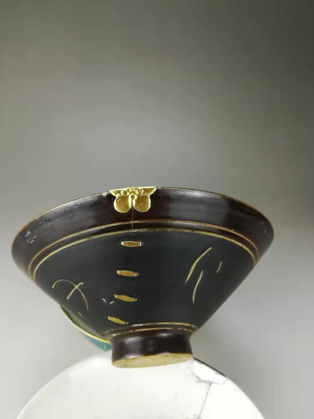 与锔瓷相比,王铁权如今更倾心于漆缮。漆缮是一门用大漆、色漆、金粉和瓦灰等纯天然材质修补残缺器物的传统手工艺。漆缮一共要经过几十道程序,先把破碎的壶或盏进行清洗;用漆和瓦灰等黏合、填补缺口;塑形;根据器物的特质和破损的样子做创意设计,并画出图样;开始用漆艺技法绘制,一层一层地堆高、填平、打磨;最后“推光”“揩清”,让作品呈现出温润的特质。根据器物的破损程度,修缮时间短则几个月,长则两三年。