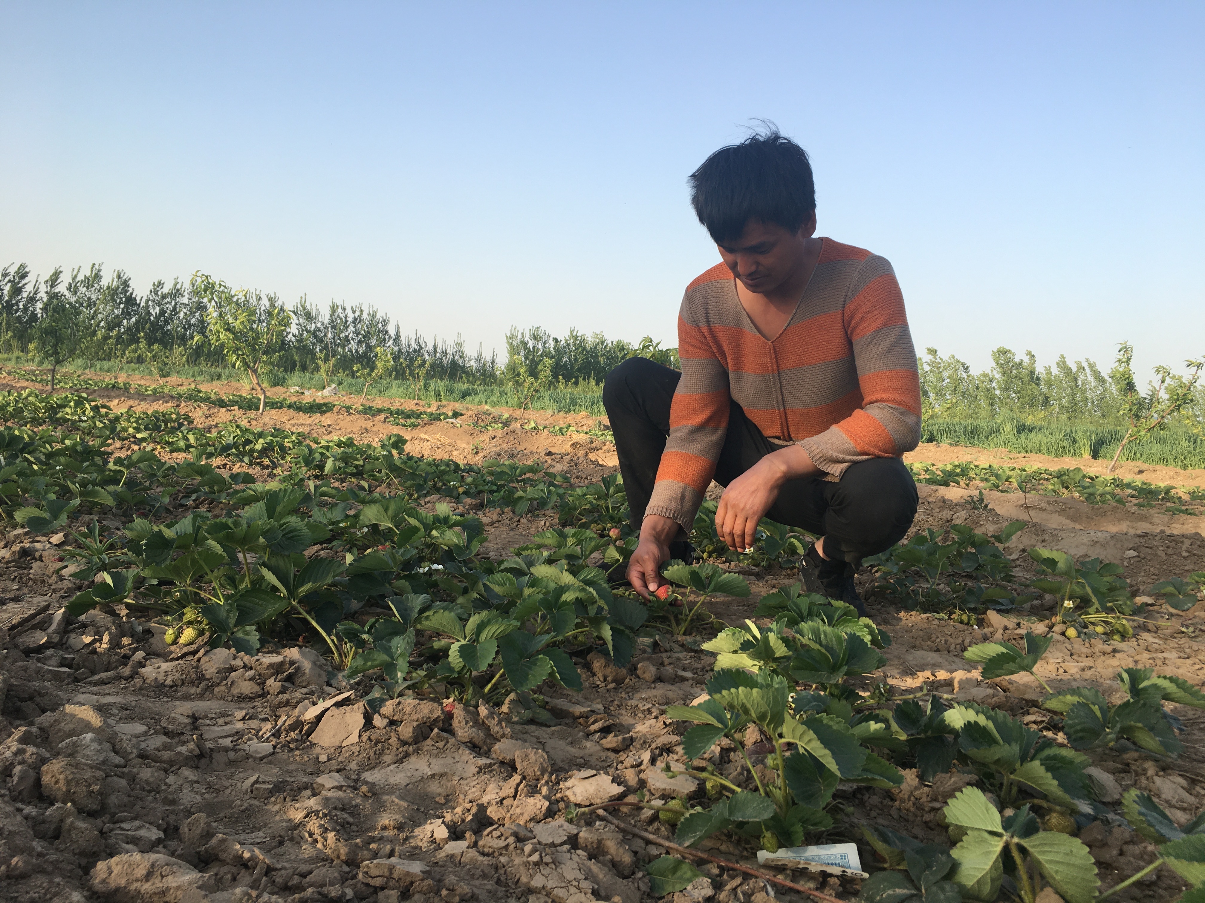 为了能多赚些钱,也为了能多照顾家,去年,陈二龙拿出自己全部积蓄又跟亲戚朋友借了20多万,在中魏家桥村流转了100亩的土地,其中20亩种了小麦,其余80亩全部种了无公害草莓。草莓这几年行情不错,而且凭着多年与水果加工企业建立的良好供货关系,他准备大干一场。