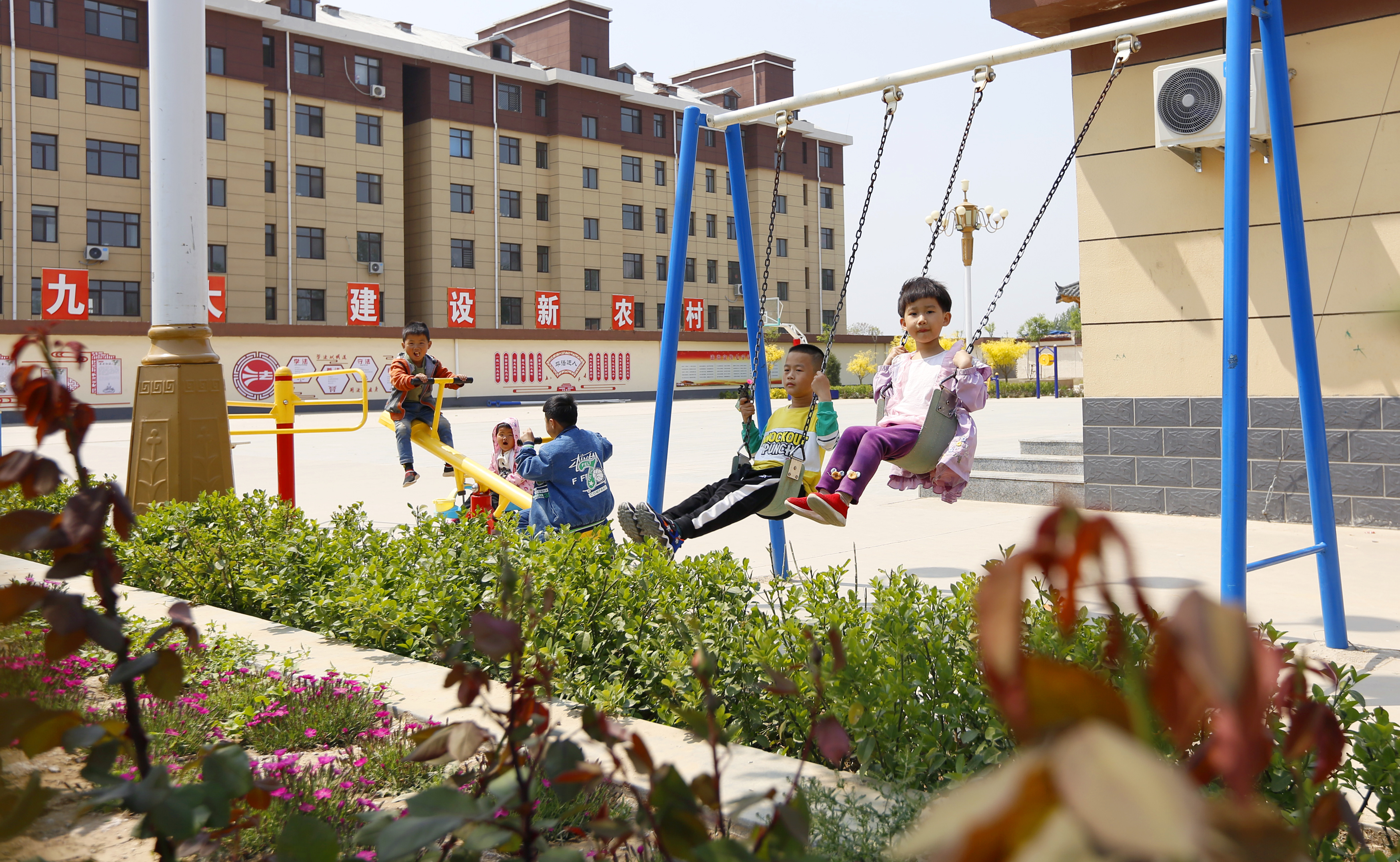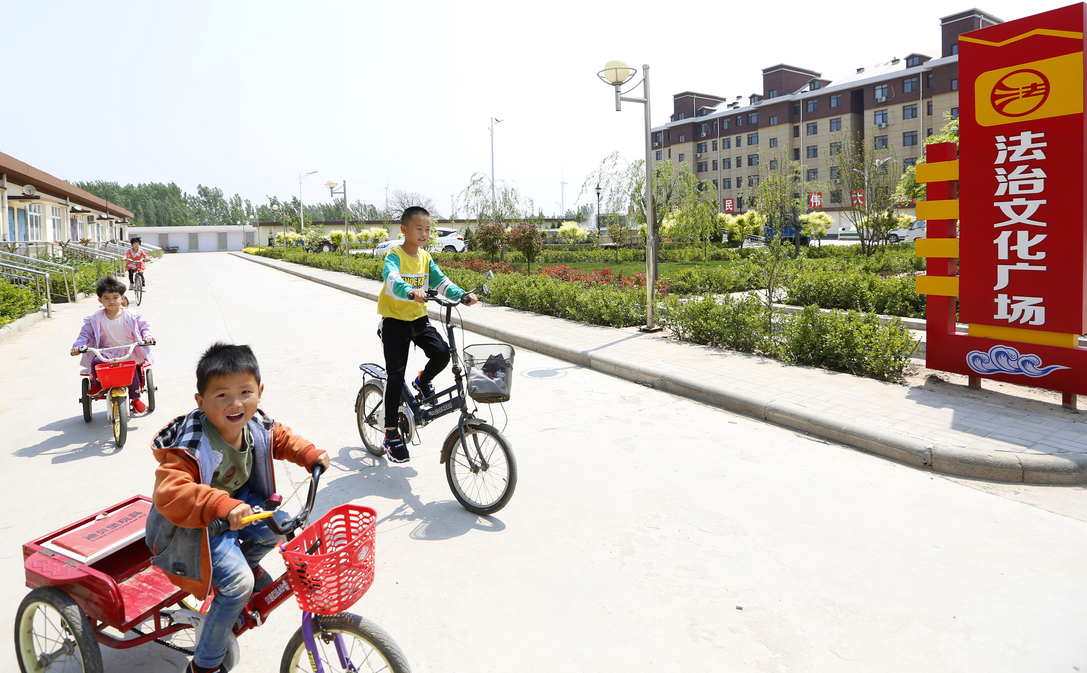衡水市阜城县王集乡南小张村的孩子们在法治文化广场游玩儿。