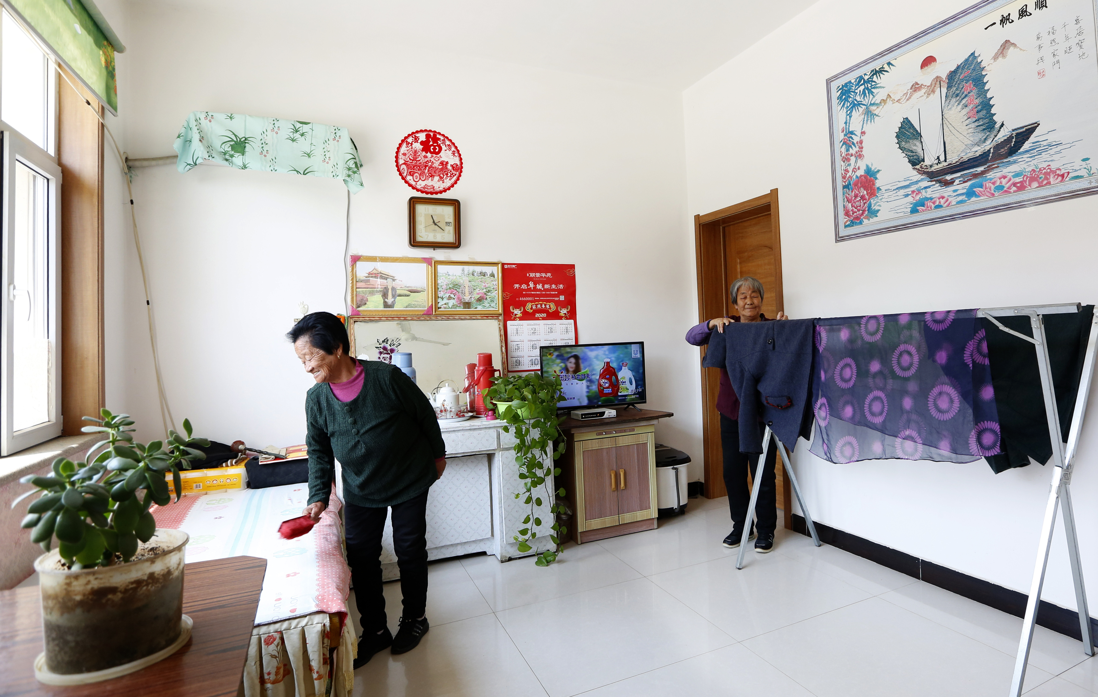 衡水市阜城县王集乡南小张村互助幸福院的老人们打扫房间卫生。