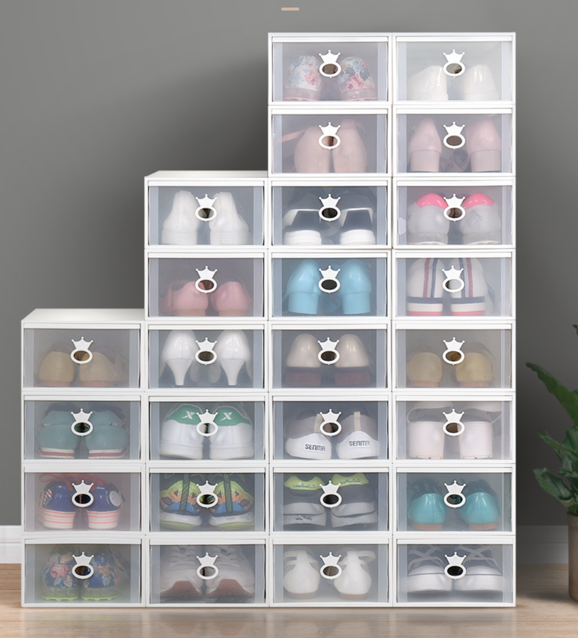 冬季的鞋子比较笨重厚实,雪地靴、马丁靴、筒靴等,若随意摆放在空间中,杂乱又占地方。而这些陪伴你的“战靴”也到了休整时期,如果用鞋盒收纳起来,不仅能节省空间,也能将爱鞋更好地保存。透明的盒子方便寻找对应的鞋子,抽屉式的设置也更方便拿取。