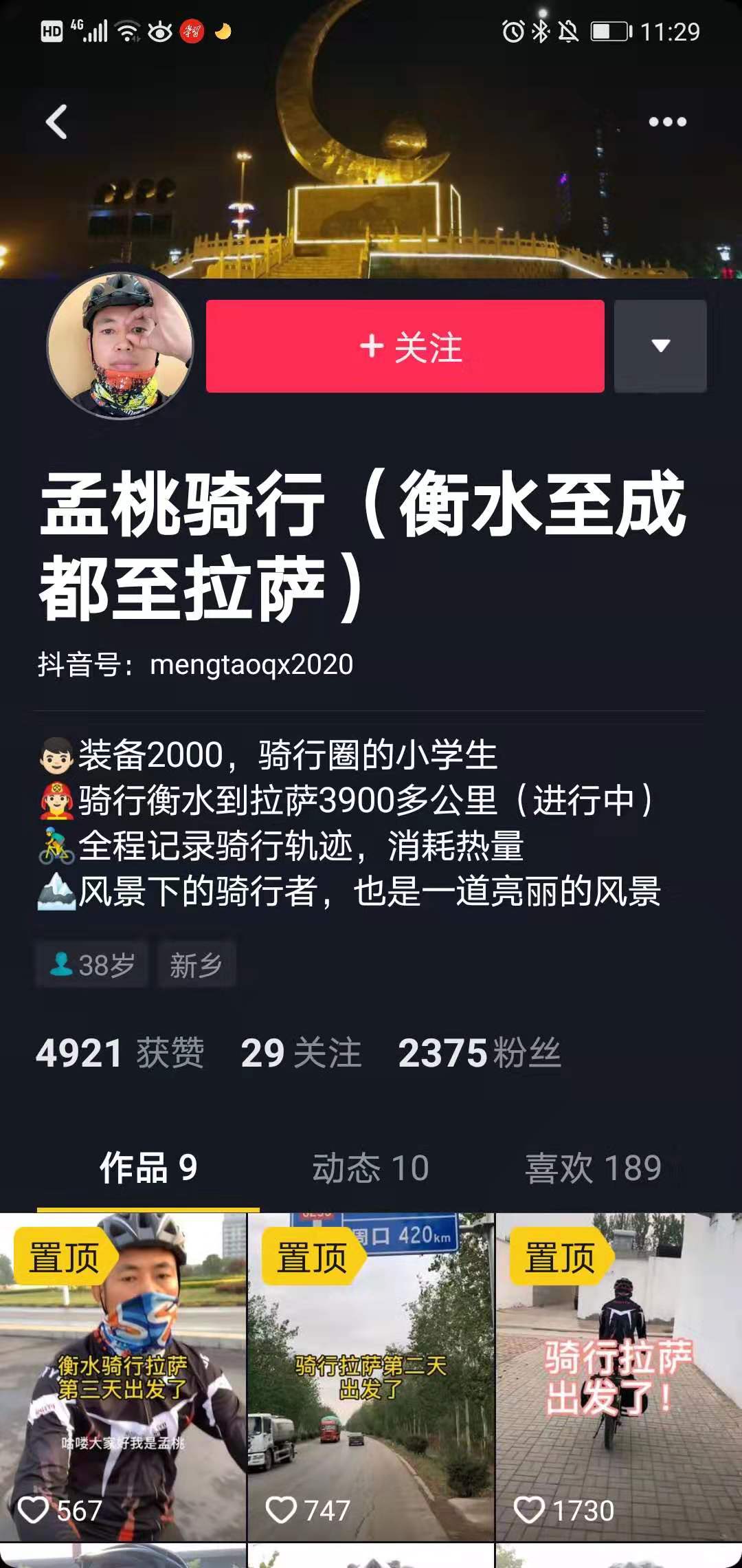西藏是一个美丽神奇的地方,但当地高原气候阻挡了不少人进藏的脚步。如果要去西藏,你会选择什么样的方式前往呢?日前,深州80后男子孟宪堆用行动给出了答案——骑行!3日,他从衡水出发,以平均每天骑行140公里的速度向着拉萨行进,并用视频记录下骑行历程,励志短视频一经发布就引来大批网友围观。