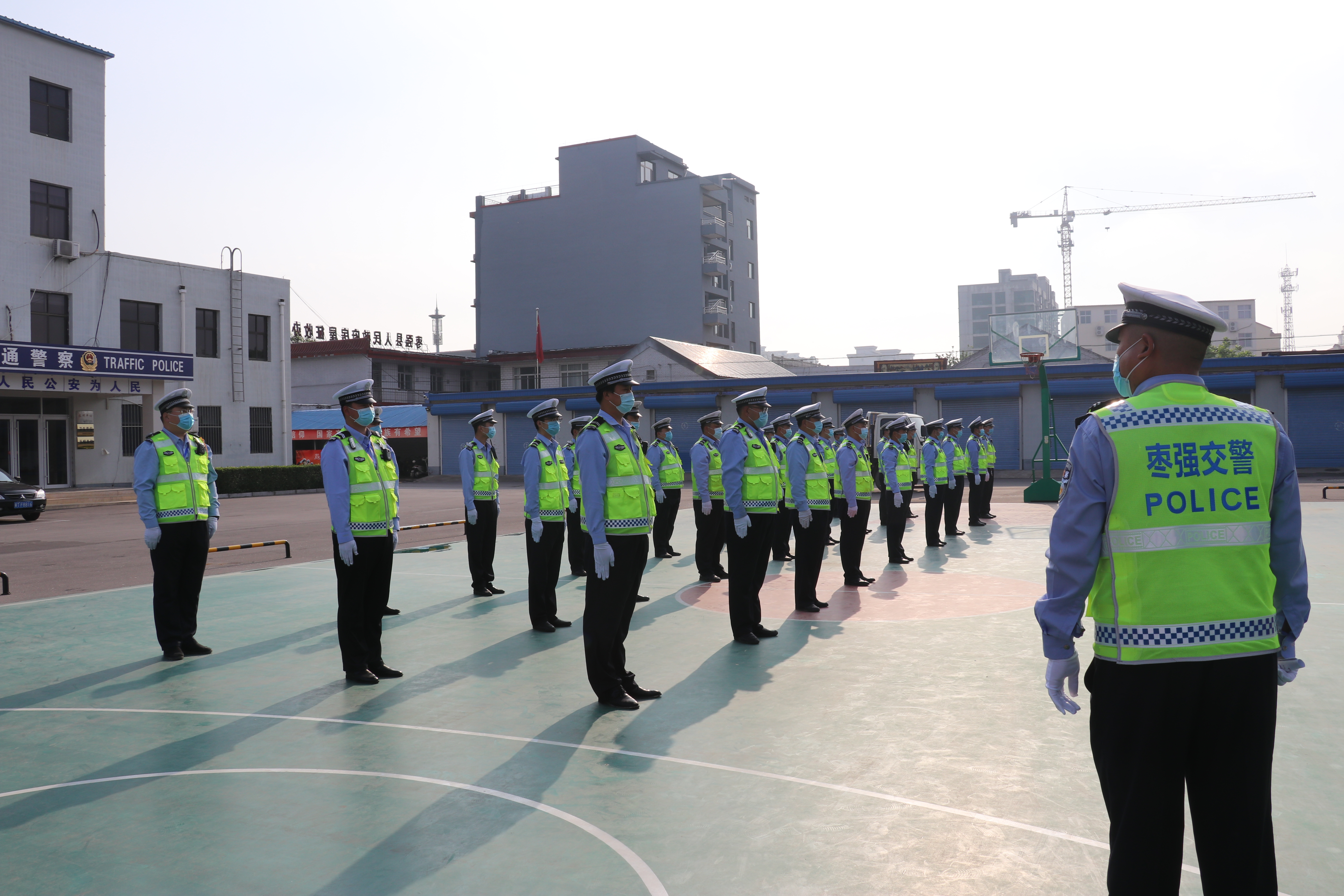7日7:30分,阴雨绵绵,枣强交警全体人员着装整齐集合完毕。