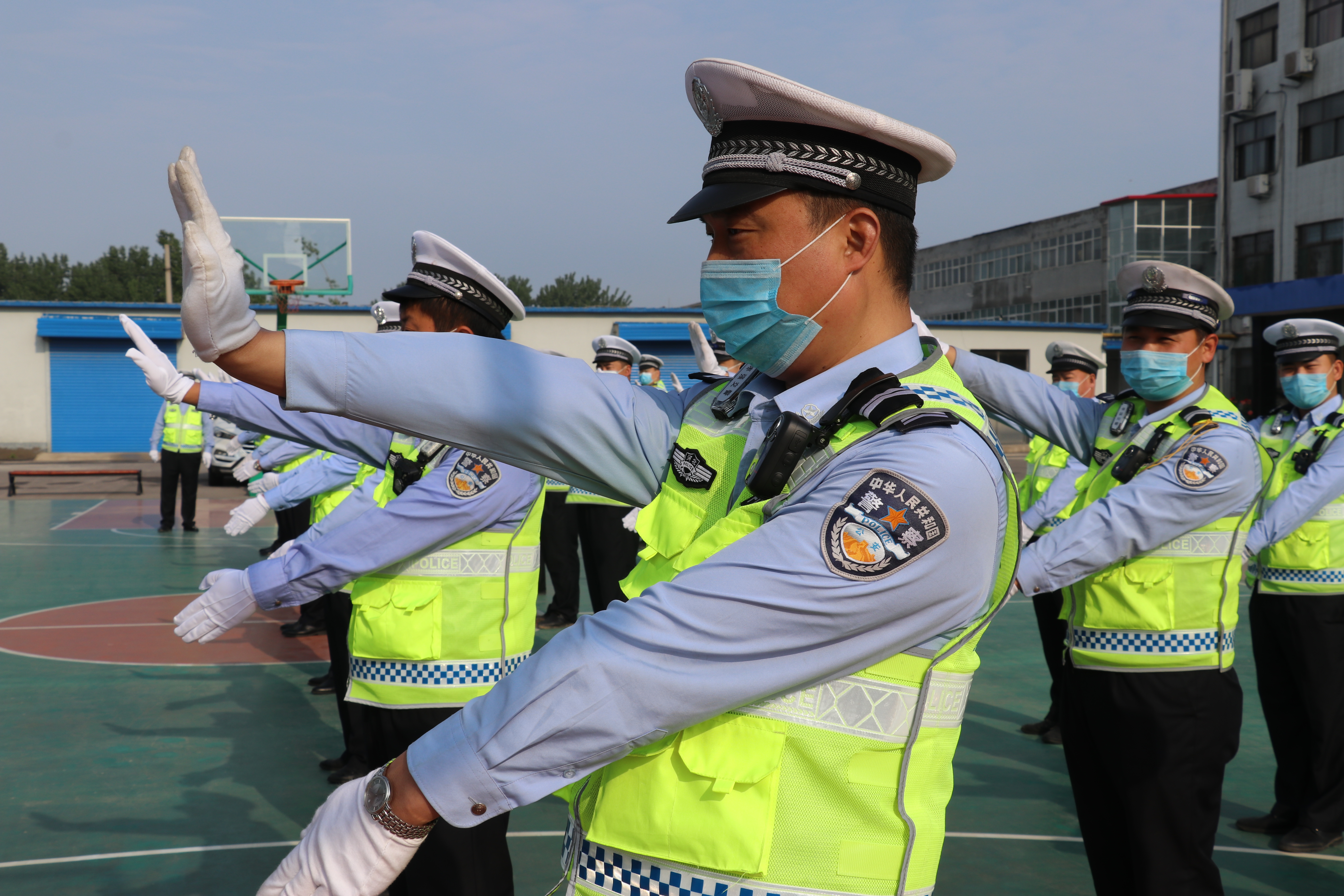 随后民辅警进行了队列训练,重点练习了三大步伐、四面转法、敬礼、交通指挥手势等科目,参训人员个个斗志昂扬、精神抖擞、严肃认真,充分发挥交警不怕苦、不怕累的优良作风,刻苦学,认真练,对每个动作高标准、严要求,精益求精。