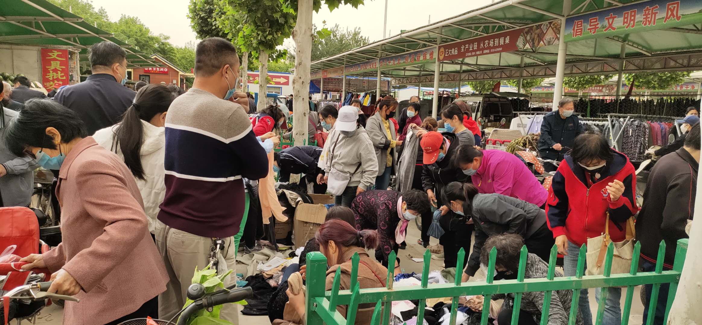 七点到八点半这段时间,是早市里人们购物的高峰期。来往人群熙熙攘攘,个别路段还拥堵起来。