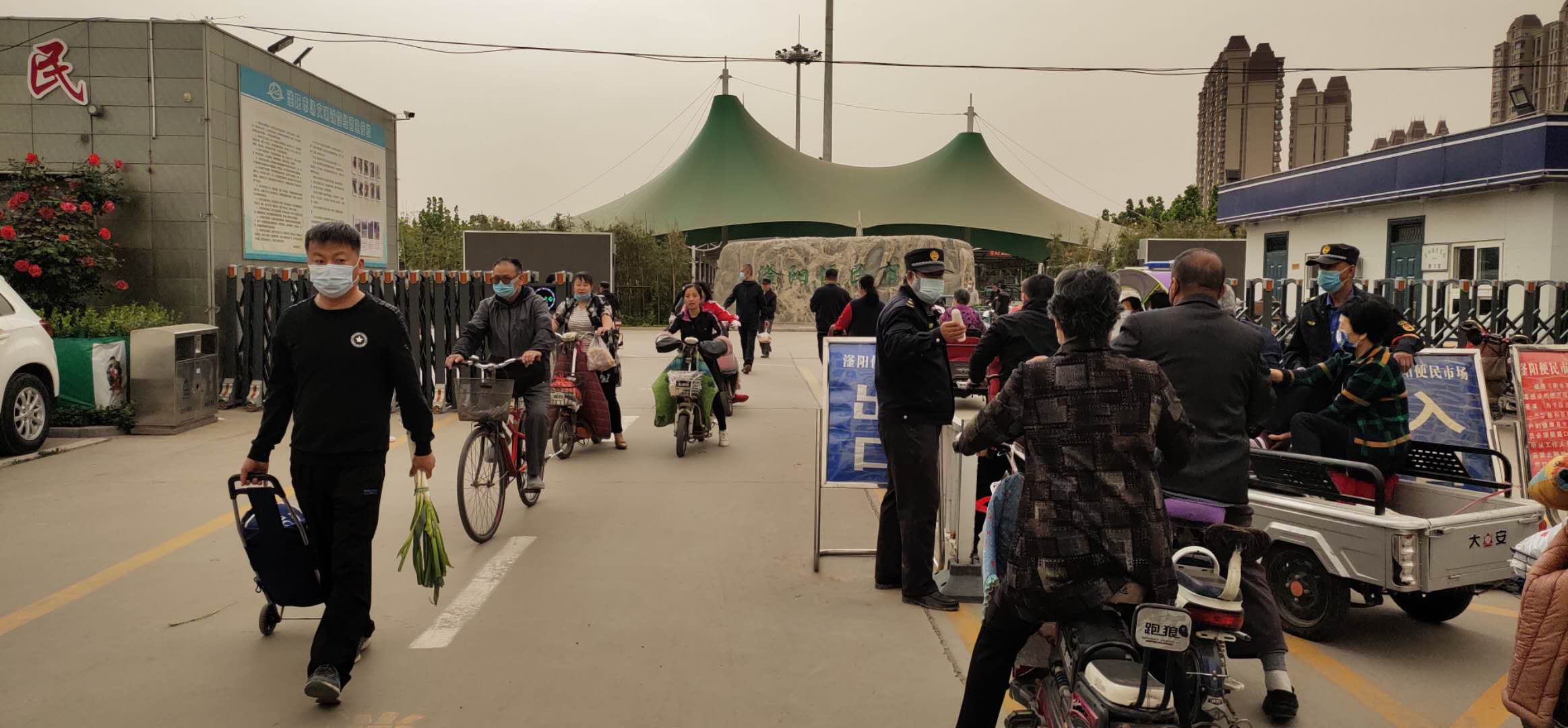 一天的忙碌从清晨开始。5时30分,伴随着清晨温暖的阳光,滏阳河便民市场开始营业。大门一开,从城市的四面八方赶来的商贩们开始活跃起来,他们排队依次进入。入口处,工作人员对每个人进行严格的体温测试。“面对普通市民的早市5点半营业,旁边那个批发市场4点就开始营业了。”工作人员一边给记者测体温,一边介绍。走进市场,偌大的空间里,分列着蔬菜果品、生鲜、百货等区域。摊主们重复着熟练的动作,先把摊位规整好,摆放菜品,竖起价格牌,打起饱满的精神,为开张做最后的准备。