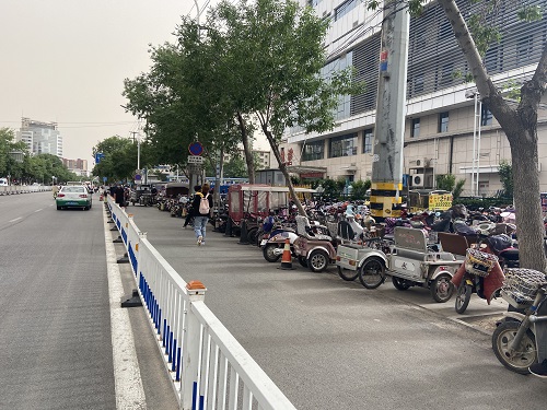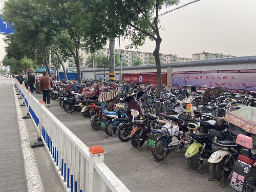 郗维维所在的中队正好负责此路段的交通秩序,据他介绍,此路段非机动车乱停乱放治理存在几大难题。首先,非机动车停车位严重不足。各单位“门前三包”规定,“临街所有的单位、门店、住户将担负市容环境责任三包,包卫生、包绿化、包秩序,市人民医院也有责任管理院外的停车秩序。医院有两千多名员工,一千多个床位,再加上病人家属、亲朋,每日达4000至5000辆的非机动车停车量,可医院内只有200多个机动车停车位,医院员工都只能在院外停车。“之前医院东门南侧还划分有员工停车位,现在因为医院家属院工地施工,围挡挡住了便道,员工也只能在路边停车,大大增加了管理难度。”郗维维说。