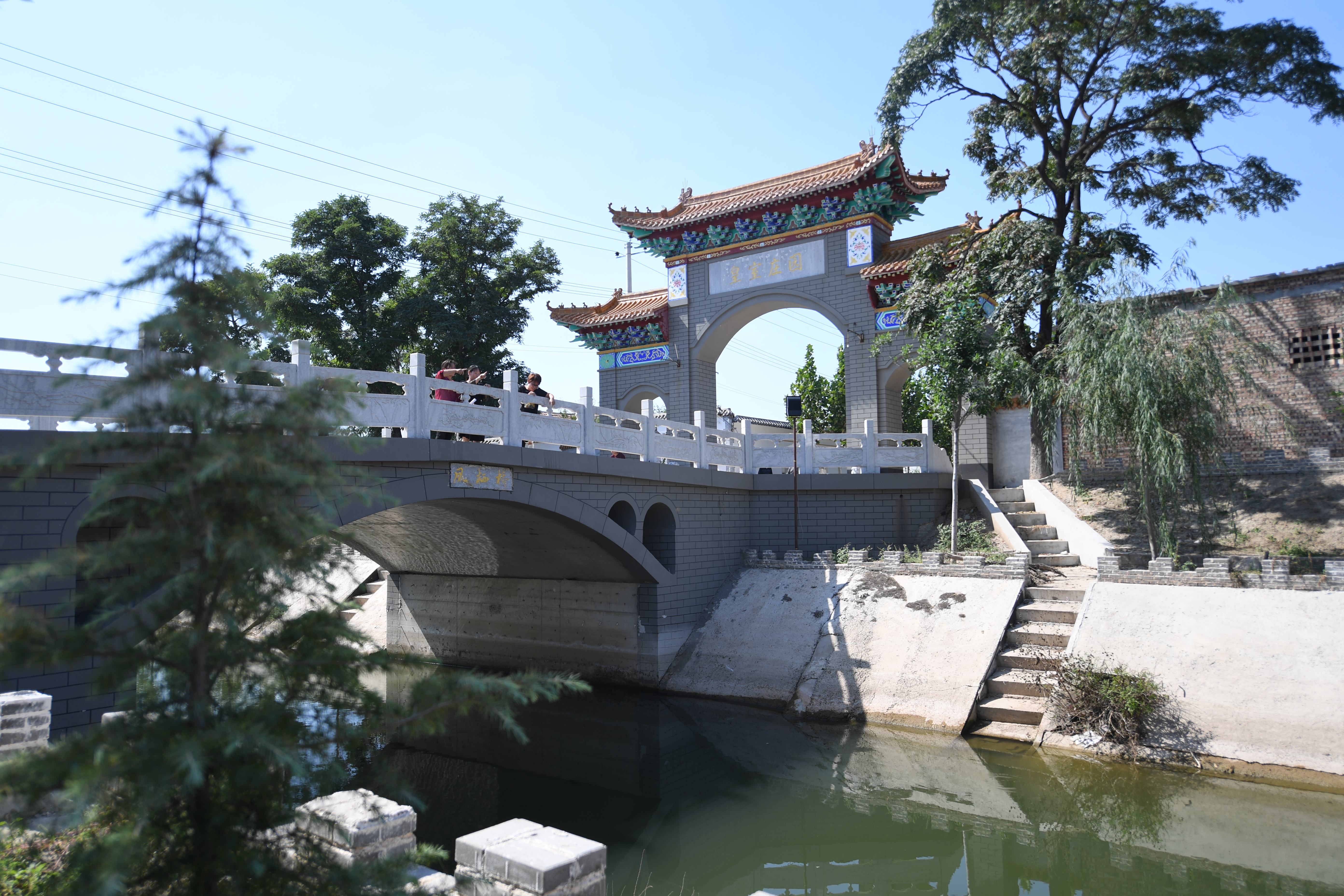 衡水市阜城县霞口镇大皇庄村村口崭新的牌楼和石桥。