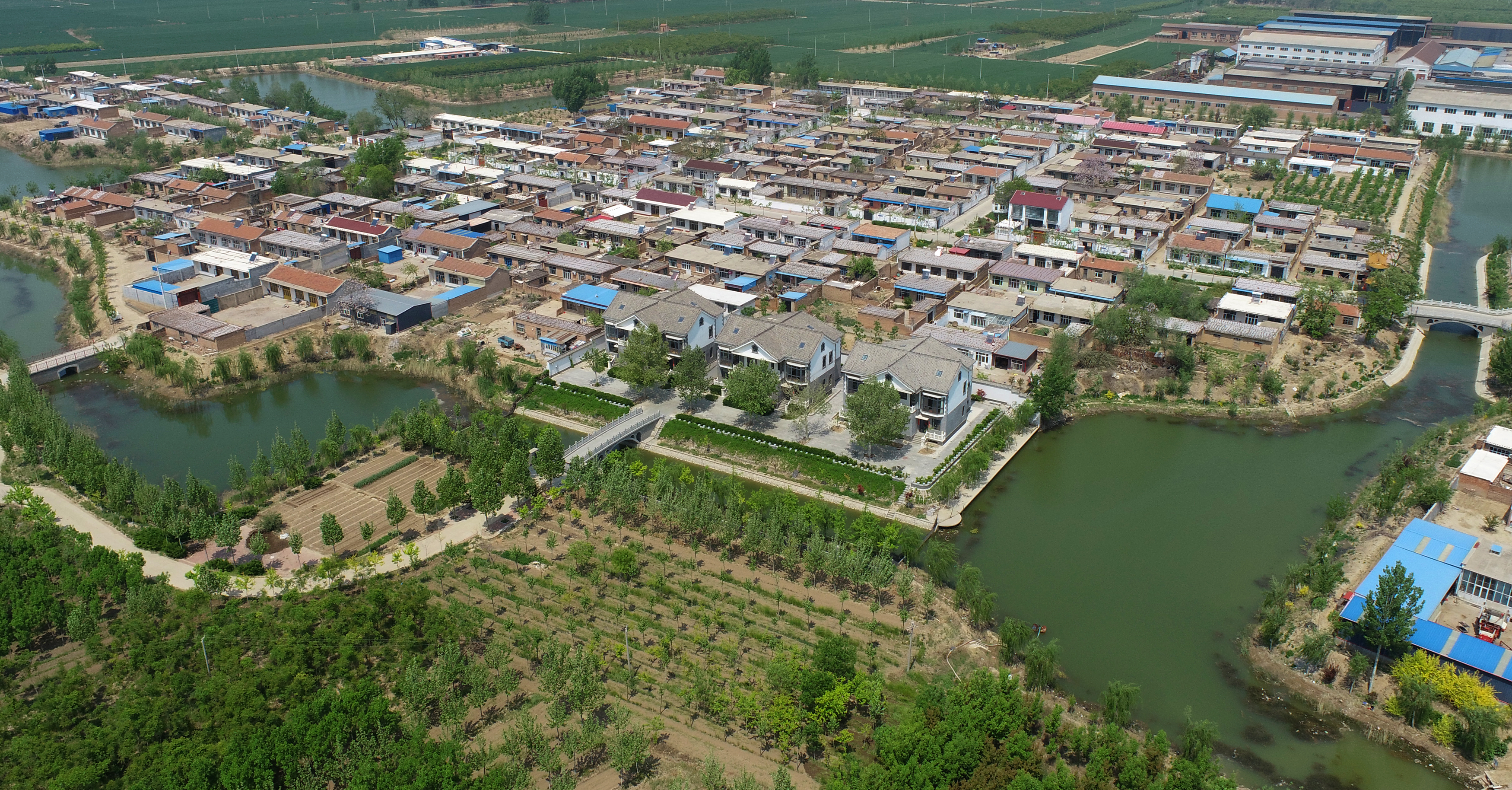 如今的大皇庄村,小桥流水、绿树成荫、街道宽敞,一个洁净美丽的现代化小村庄展现在人们面前。