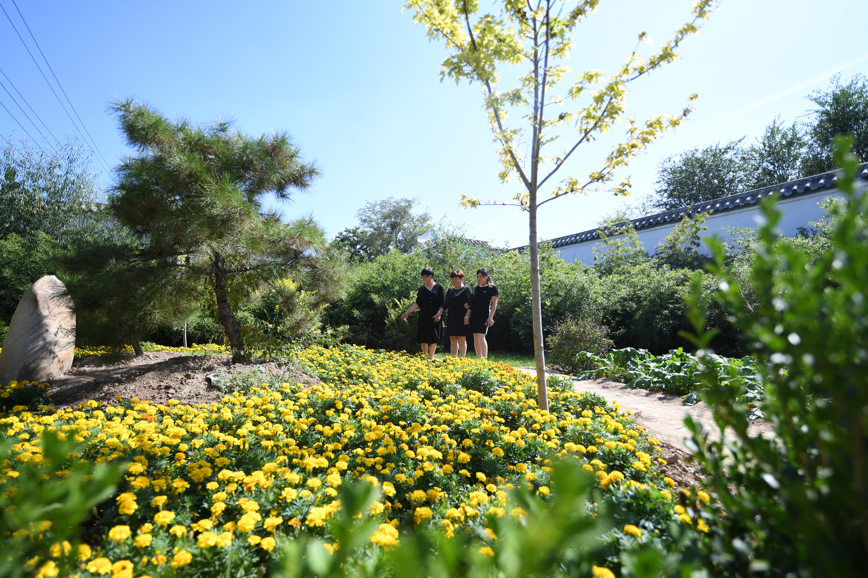 衡水市阜城县霞口镇大皇庄村村民在公园赏花游玩。