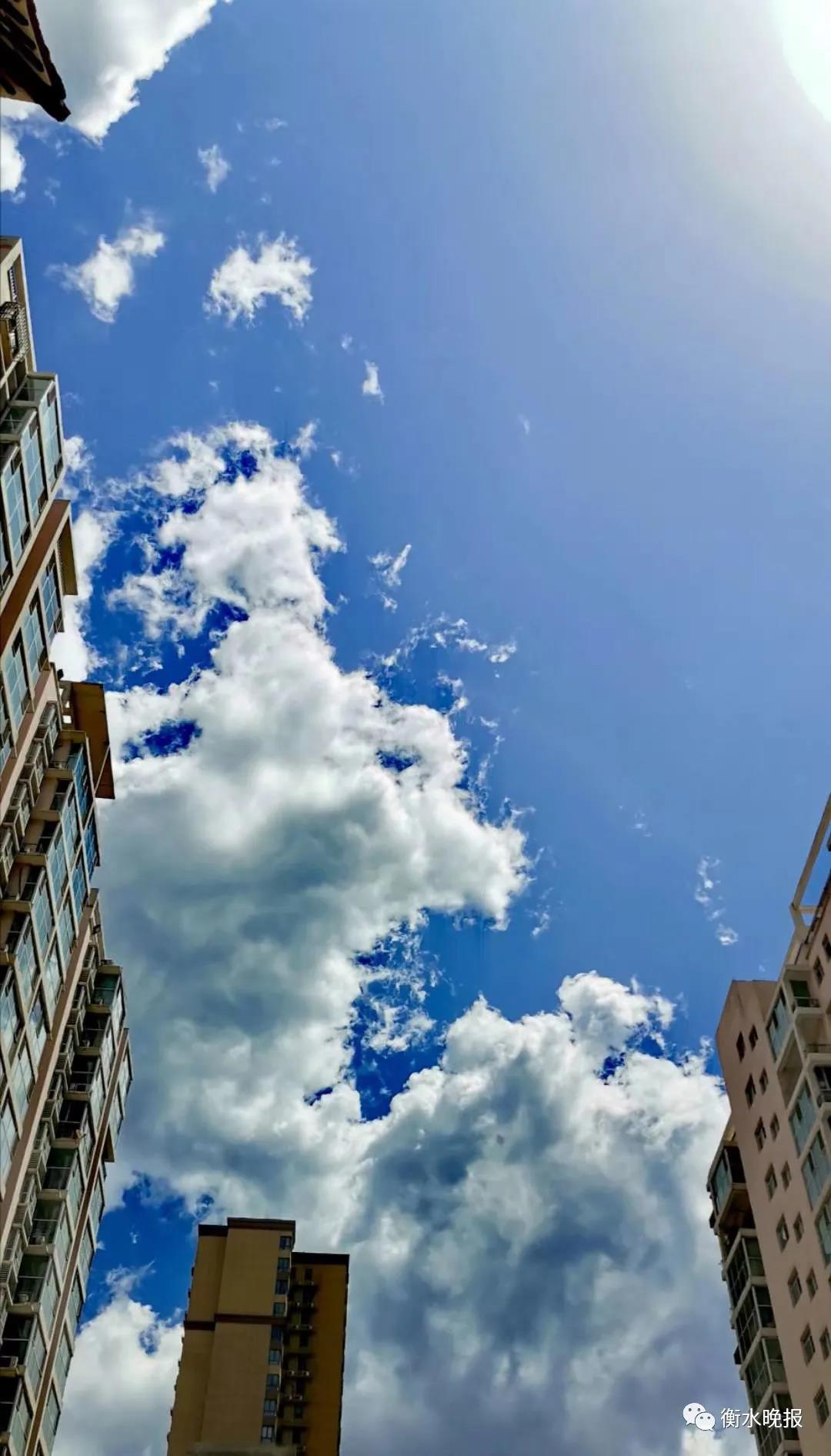 云儿轻盈地跳着、舞着,掠过衡水湖的湖面,把水面也变成了“蓝天”,让鸟儿们惊奇而迷惑;飞至滏阳河畔,一不小心又融进了河水中,那一汪汪蓝和一朵朵白随河水蜿蜒漂浮着,不一会儿又在远方与蓝天“密会”,亲昵“相恋”了;它们恣意地变幻着身姿,映在衡水城中央,躲在楼间、树隙、窗前,忽而又悄无声地飘进广场上和公园里;风儿轻轻刮过,它们好像害了羞,俏皮地与人们玩起了捉迷藏。但无论多么低调,也隐藏不住它们的颜值和气质,阻挡不了人们追逐的脚步,大家四处奔走着、搜寻着,寻找着各自心里最美的景色……