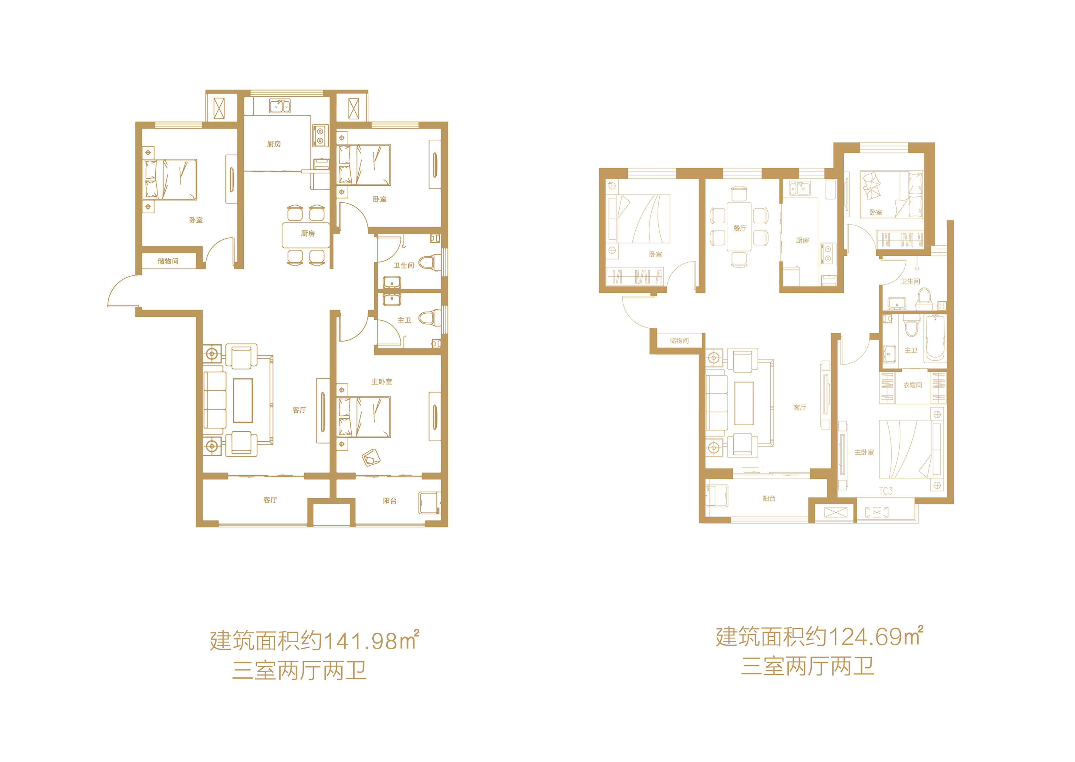 本案户型方正、通透、动静分区、干湿分离,值得一提的是南向双阳台的设计,大大提高了业主的生活品质。