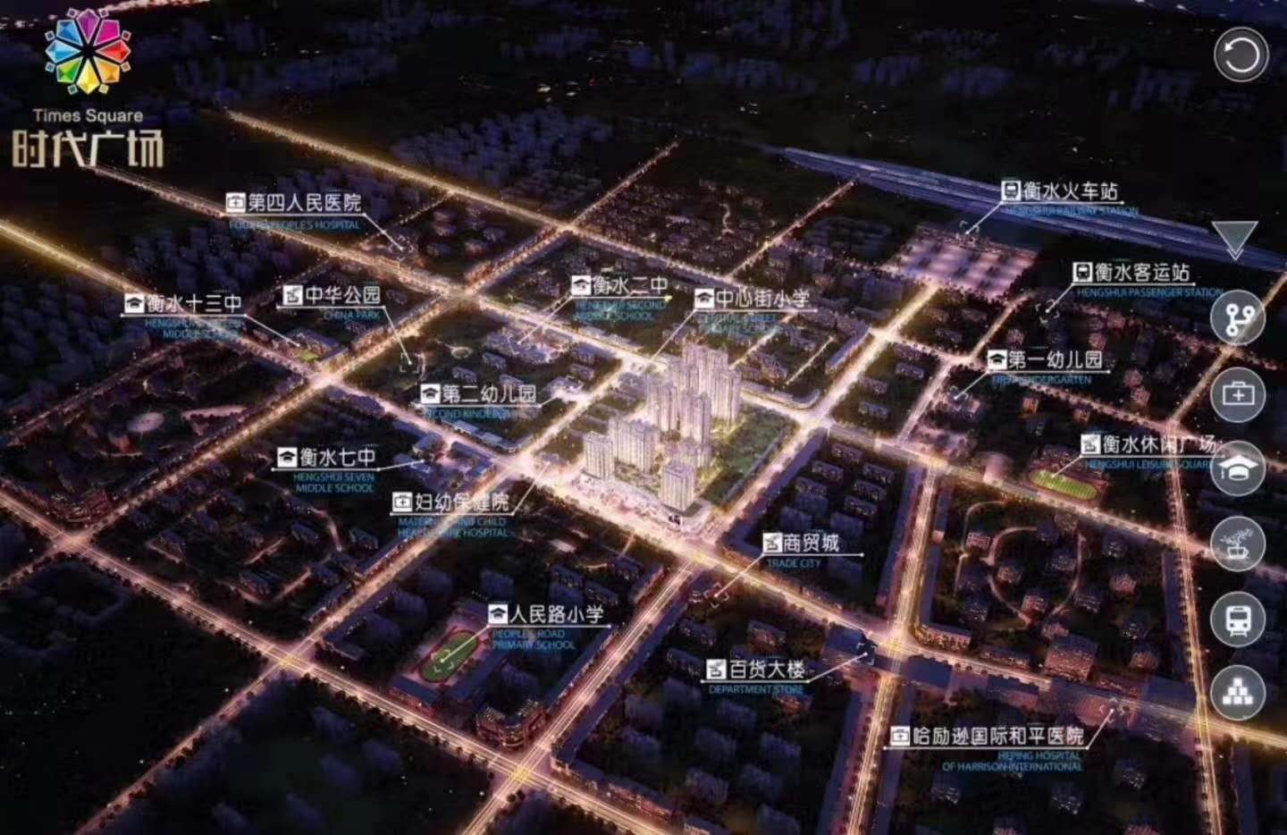 时代广场由富恒地产开发建设。项目处于河西区人民路与中心街交汇的黄金地段,南邻人民路,北至新华路,东临中心大街,西至保健胡同。此地段是衡水市政治、经济、商贸、文化中心,原址是衡水迎宾馆,一直以来都是衡水最核心的位置,坐拥衡水市最好的生活配套,上风上水,属于衡水的真正核心商业生活区。