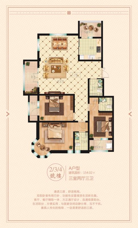在水一方户型舒适合理,由85㎡至147㎡之间多种户型构成,可以满足不同业主的居家需求。空间设计遵循以人为本的建筑理念,户型方正实用,空间划分合理,充分保证了居住的采光、通透、美观、舒适等多方面需求,打造真正的人性化舒居典范。此外,项目在社区临河的最佳位置打造了5栋奢华型平墅洋房,户型设计更加舒适,一梯两户,南北通透,明厨明卫。洋房结合优越的景观资源、高科技智能配套等特点,打造真正的奢居豪宅。
