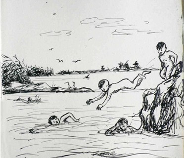记得小时候的暑假,经常和小伙伴们去河里洗澡。河的水面很宽,水碧清碧清的,清得都能见到水底的小鱼,脚踩到河底觉得蛮清爽,陷得一点也不深,水是流动的。到了汛期,水位一高,水流很急。太阳热辣辣地照着,小伙伴们在河里打水仗,摸小鱼,捉小虾,玩儿够了,爬上岸,晒晒太阳,感觉热了,再下河接着玩。到了冬天,和小伙伴们去滑冰,虽然天气很冷,但是玩儿起来感觉一点也不冷,玩得那么高兴,心情是那么舒畅。