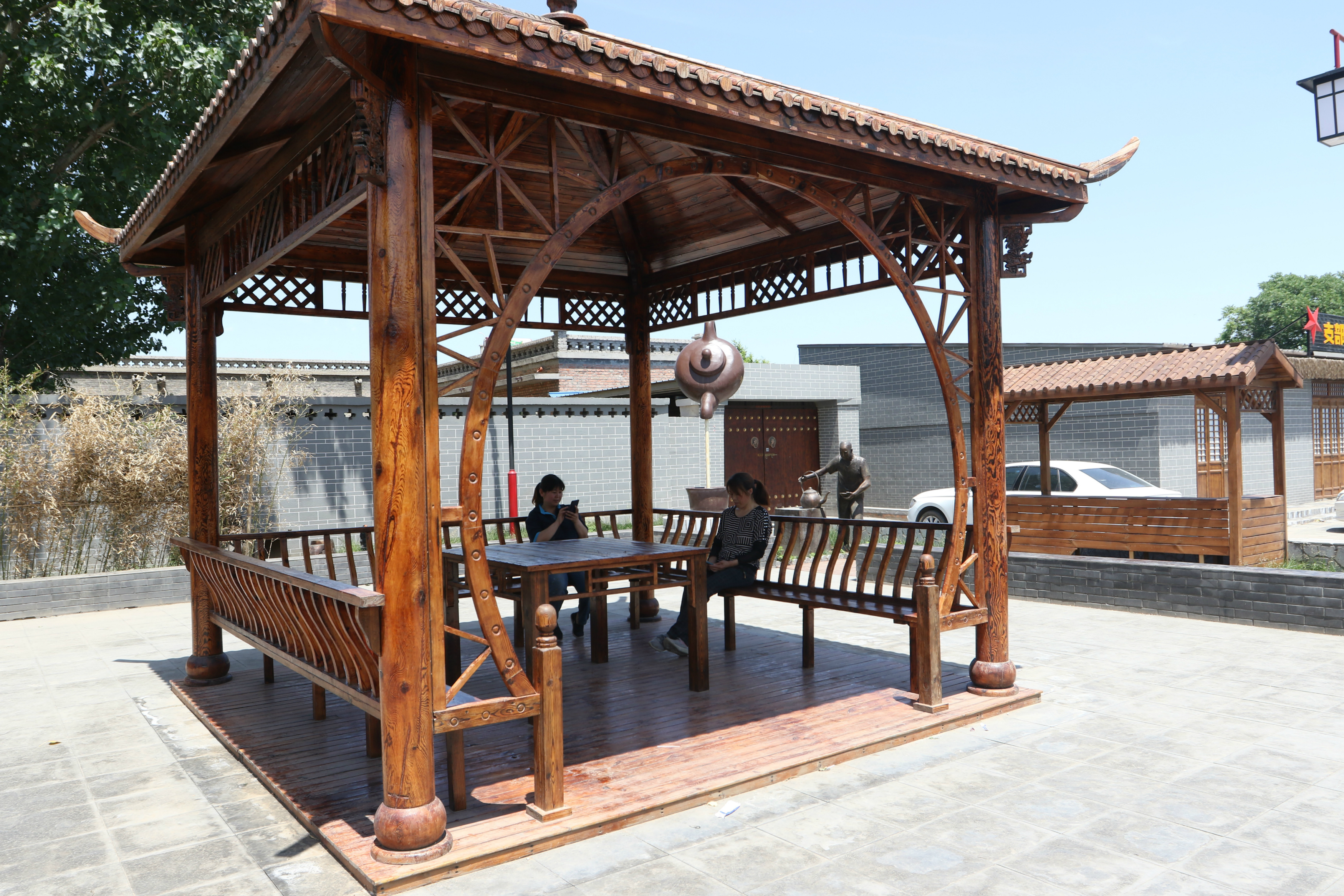 衡水市安平县台城村村民在凉亭内小憩。
