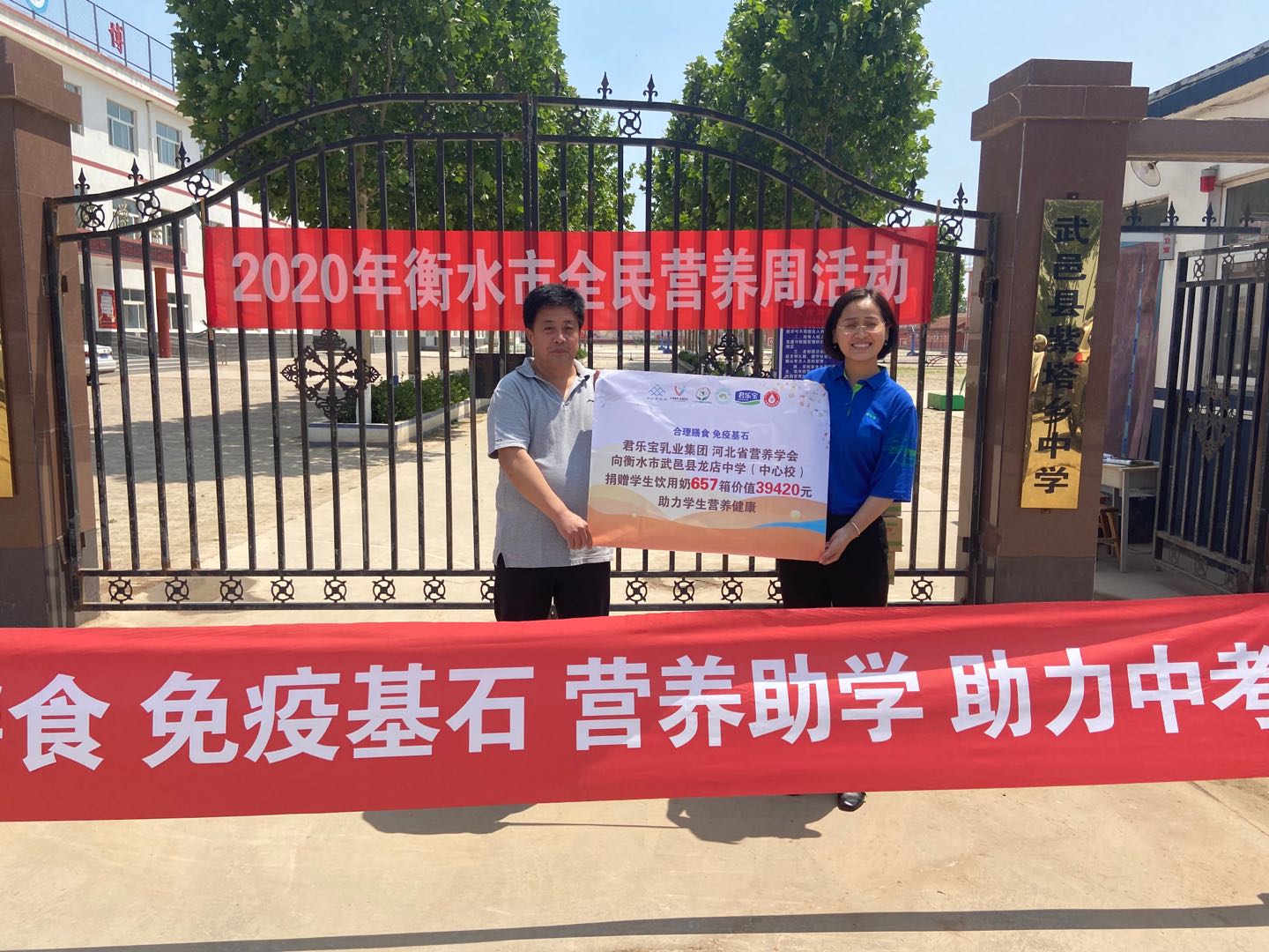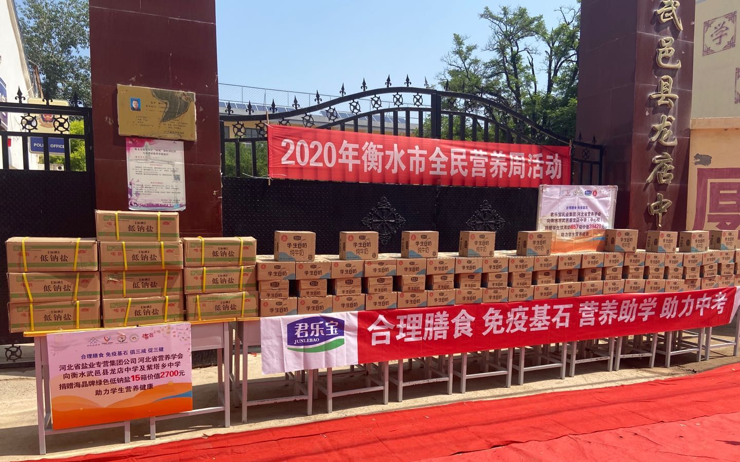 今年5月17日至23日是全国第六届全民营养周。5月22日,为全民营养周助力,关爱学生成长,河北省营养学会联合衡水市营养学会,携手君乐宝乳业集团、河北盐业专营集团公司,走进衡水市武邑县,将学生饮用奶及低钠食用盐捐赠给龙店中学、紫塔中学两所学校的学生,让学生营养更全面、膳食更均衡。
