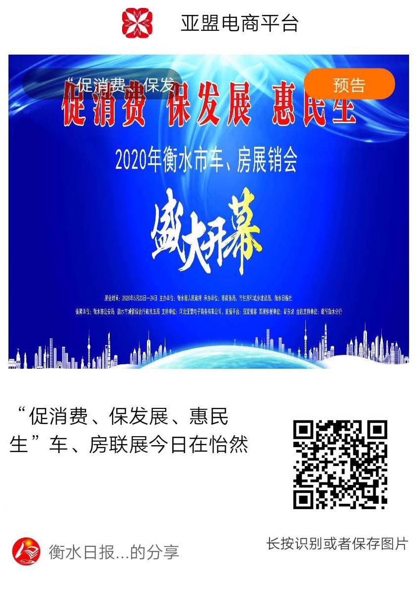 本次展会由衡水市人民政府主办,衡水市商务局、衡水市住建局、衡水日报社承办,为期两天,是我市“促消费、保发展、惠民生”系列活动之一,是我市在统筹做好疫情防控和经济社会发展关键时期,由多个部门相互配合,率先启动的一次大型商业促销活动,举办此次展会旨在提振市民信心,激发消费活力,有力促进我市汽车、房产、建材等消费领域扩容提质,为广大房地产、汽贸等行业全面复工复产按下“快进键”,助力我市全面夺取疫情防控和经济社会发展“双胜利”。