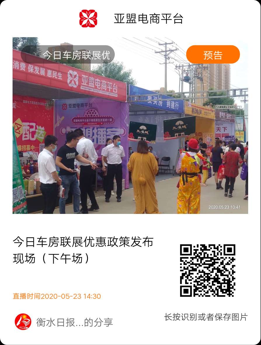 本次展会由衡水市人民政府主办,衡水市商务局、衡水市住建局、衡水日报社承办,为期两天,是我市“促消费、保发展、惠民生”系列活动之一,参展车商、房企诚信满满、优惠多多。现场40余款精品车型,30余个优质楼盘均有空前优惠。广大市民点击识别二维码进入直播间,足不出户即可观看展会开幕式,了解现场车房优惠政策、信息。