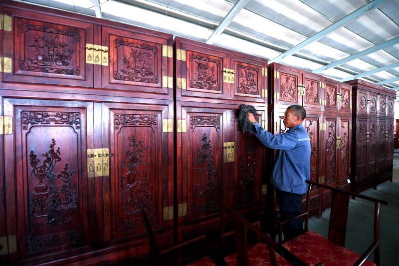 明式、清式、现代简约……在昊阳红木品鉴馆,各种风格的红木家具让人惊叹流连。昊阳红木家具公司下好“传承”和“创新”两手棋,在坚持把传统工艺做强做精的基础上,利用自己的研发中心——“昊阳红木家具研究院”,根据市场需求变化趋势对产品结构进行调整。疫情期间,他们研发设计出了现代新中式风格系列家具,共计一百多件,目前正在进行精细化样品打磨,已与两个卖场达成初步合作意向。