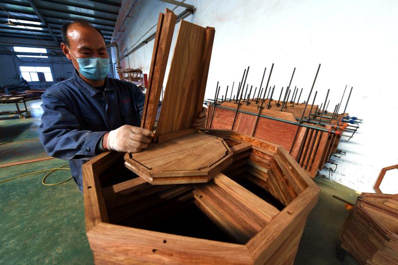 昊阳红木家具公司原材料储备充足,但受疫情影响,今年2、3月份订单数和销售额均大幅下降,且由于工人大多来自外地,因交通管制等原因,今年3月底才陆陆续续分批返岗。面对这种局面,公司采取“提品质”加“研发新产品”两条腿走路的办法,按下了“重启键,有序推动复工复产。