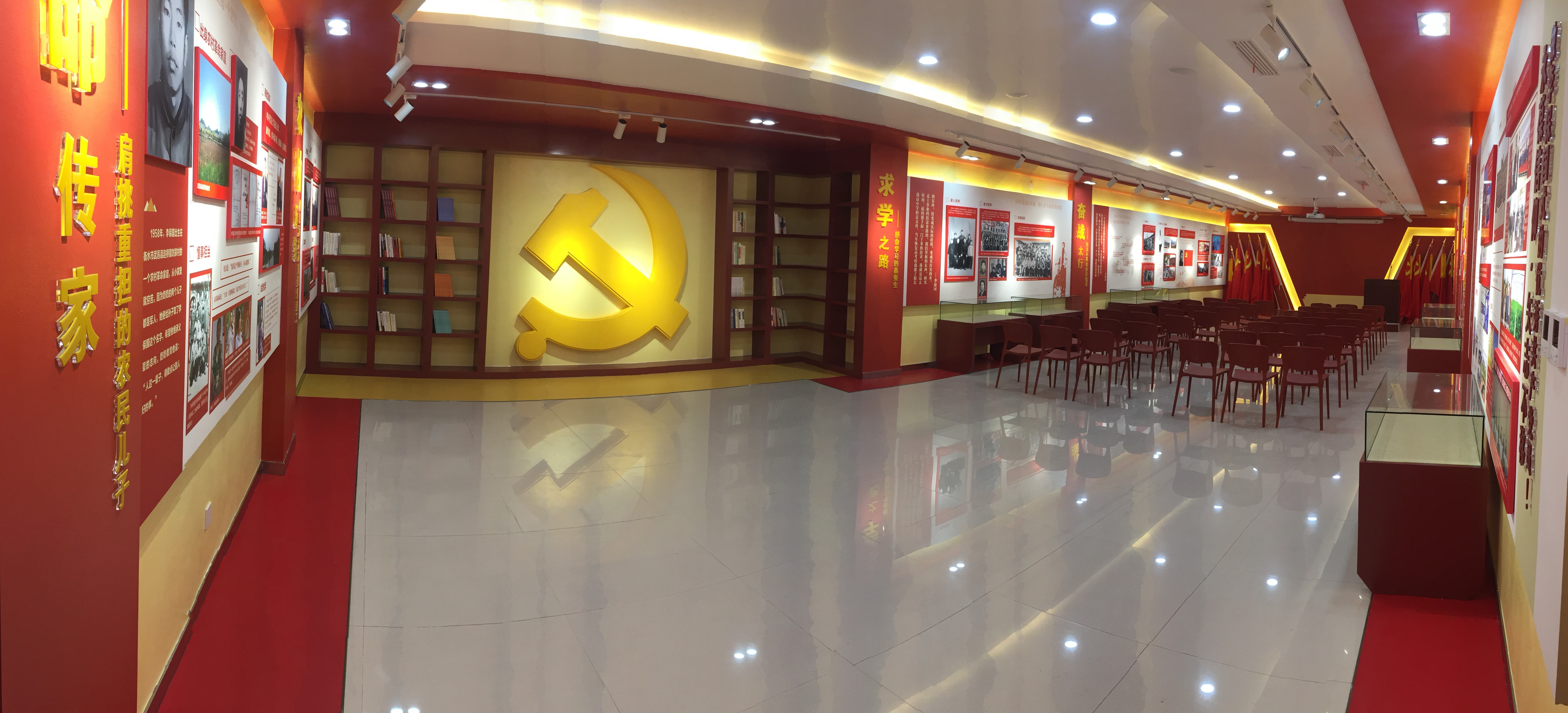 主题教室以“永葆信仰,矢志不移”为主题,采用“展厅+课堂”的现代设计理念,将展厅和课堂融为一体,装备现代化多媒体视听手段和情境教学设施。主题教室建筑面积150平米,可容纳学员72人,共包含了7个板块,通过展示李保国教授的学习、生活和工作经历,李保国的妻子郭素萍老师和生前团队继续传承其未尽事业的先进事迹,武邑县广大党员干部凝聚榜样力量、弘扬李保国精神的各项活动及取得的重大脱贫攻坚成果和工作亮点,充分体现了武邑县广大党员干部以时代楷模李保国为镜,对党忠诚、心系群众的政治品质和担当、奉献的高尚精神。
