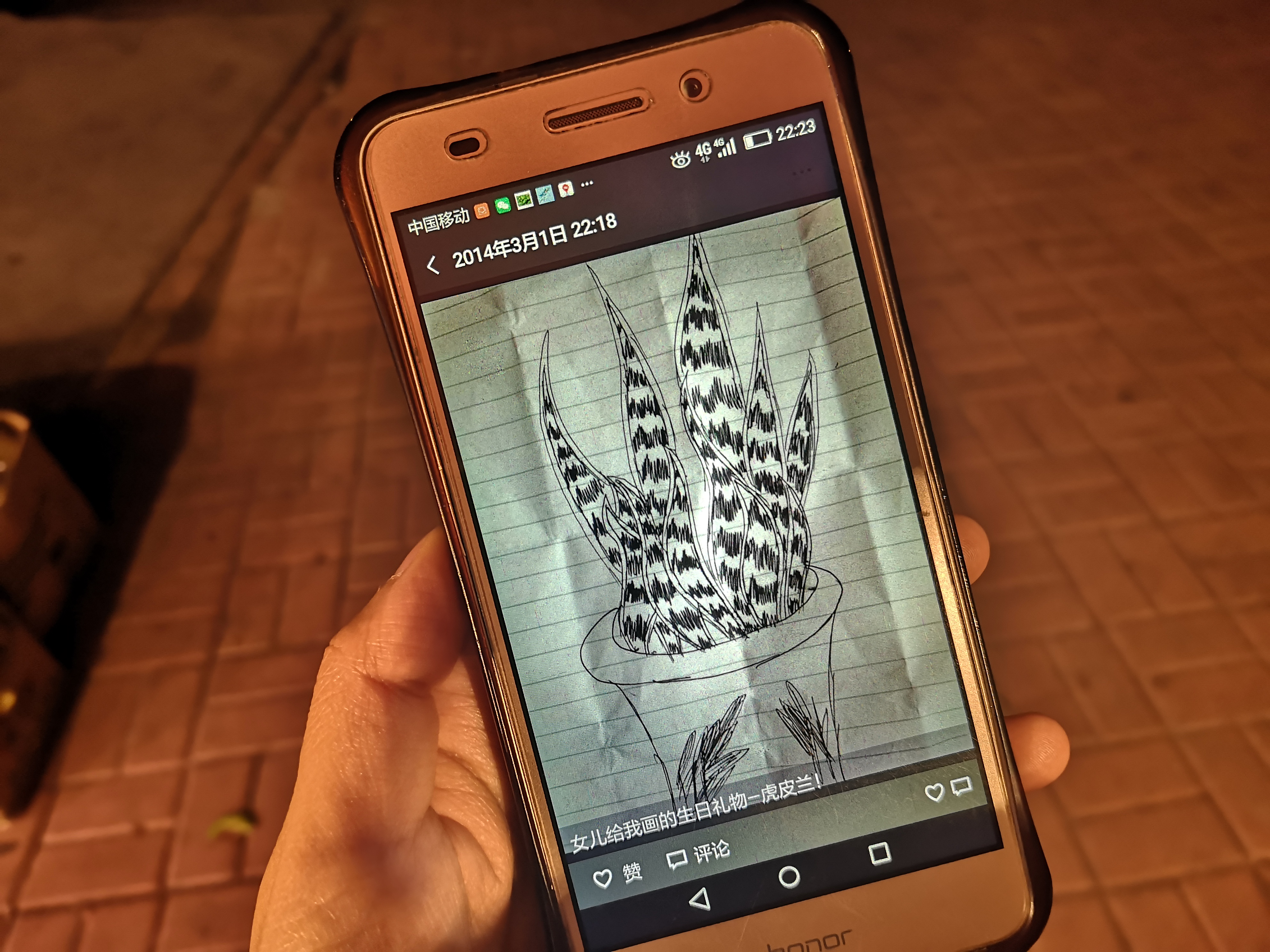 2014年3月1日,张灵在微信朋友圈里发了一张黑白色的手绘兰花,写道“女儿给我画的生日礼物——虎皮兰”。