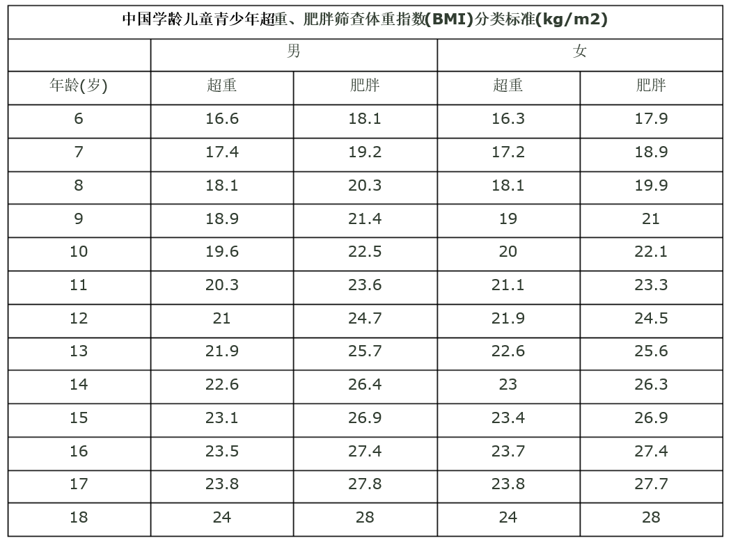 那么如何在早期发现儿童肥胖呢?医学上有一套儿童超重和肥胖的判断标准。贺源表示,3岁-18岁的儿童通过体质指数(BMI)来判断。BMI值=体重/身高² (kg/ m²)。由于儿童处于生长发育的特殊时期,以及性别、年龄的不同,判断超重肥胖的BMI值也不同,因此儿童的超重肥胖BMI值并不是一个固定值。