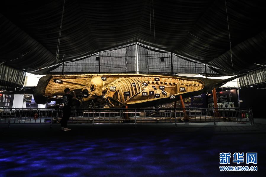 6月4日,参观者在《巨鲸传奇》特展中参观。