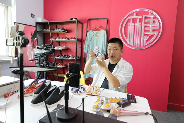 今年受疫情影响,再加上部分地区快递停发、生产车间复工较晚等原因,销售额受到很大影响,其中网络销售量就减少了30%。吕少军没有等靠,而是创新销售思路,快速适应市场形势和消费方式的转变,将布鞋的线下和网店等重要的销售阵地拓展至快手直播平台。吕少军直播所带的货,不限自己的布鞋,不少农户的农产品滞销也找他帮忙,产品涉及水果、蔬菜、鸡蛋等众多县域内的特色农副产品,吕少军的“网红”直播经济就这样如火如荼地展开了。