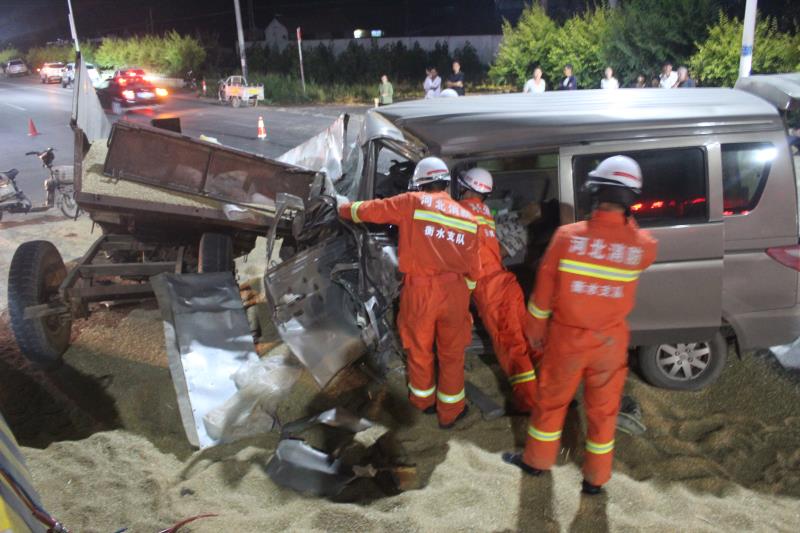 6月14日20时47分,衡水市消防救援支队景县大队接到报警称,281省道景县段,1辆面包车追尾拖拉机,致1人被困,情况紧急。景县杜桥消防救援站立即出动1辆抢险救援车、1辆城市主战消防车,16名指战员赶赴现场进行处置。