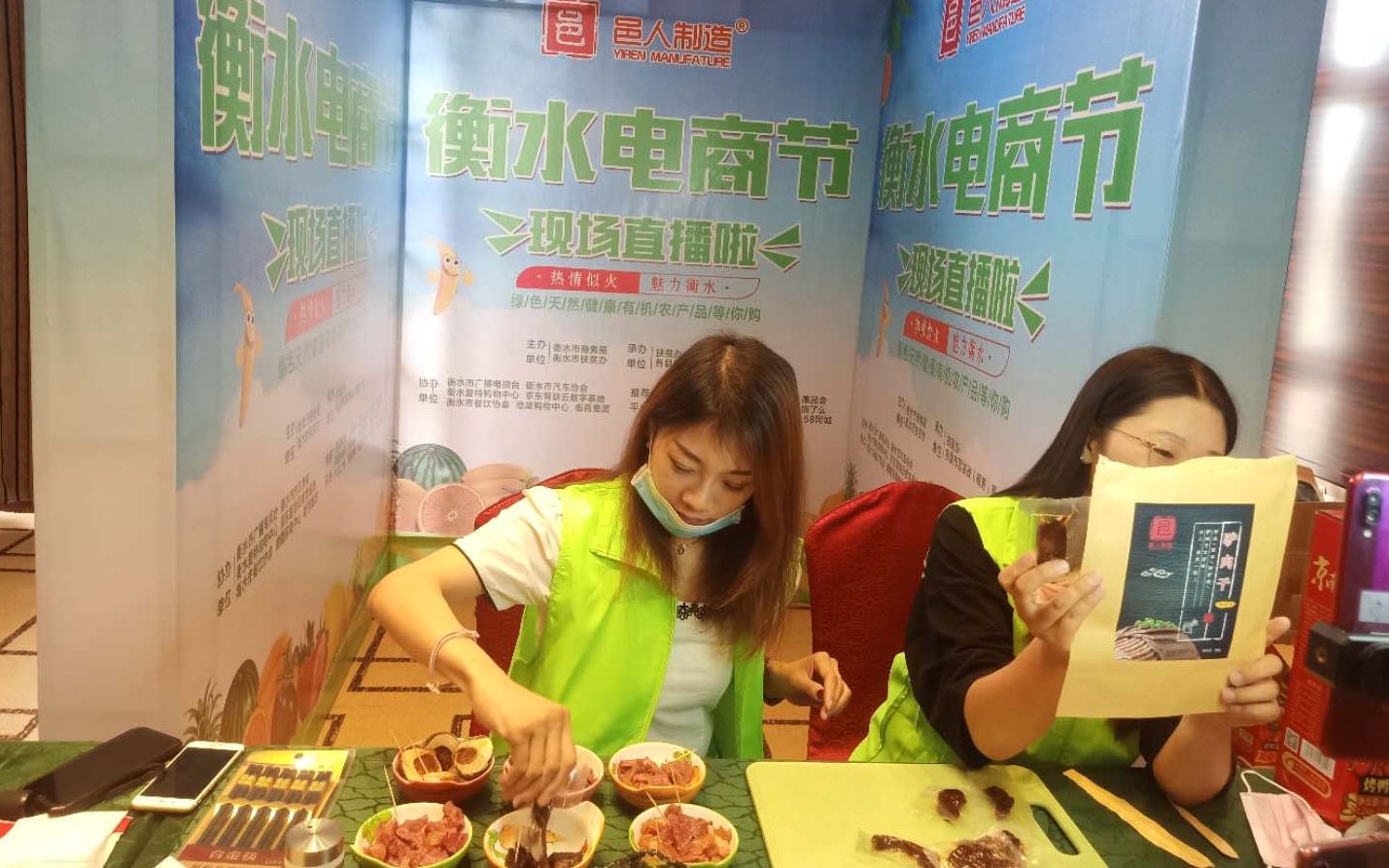 “这是我们的五香驴肉干,大家看看……”6月16日,2020衡水电商节启动,邑人制造、阿里巴巴本地生活服务·饿了么、河北亚盟电子商务有限公司,通过抖音、快手、淘宝等直播平台,大力推广老景官烧鸡、驴肉干、京南湖考鸭蛋等几十种衡水名优特产品。