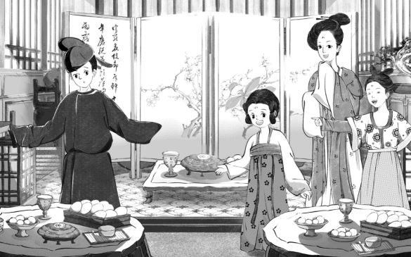 “如何让我们和古人有一些连接,特别是人性上的连接,感情上的连接,生活上的连接,这是很有必要的。”所以黄加佳非常希望可以让孩子回到历史场景当中,知道唐朝人衣食住行和我们现在的同与不同。故事中,悠悠赴唐玄宗的千秋之宴,宴席上有四个菜。黄加佳从诗僧寒山的诗中找到了四句相关的美食:扒猪脸、蒜泥白肉、糖腌螃蟹,以及生鱼片,“让孩子们穿越回唐朝可能发现,原来我们的饮食文化这么源远流长。”
