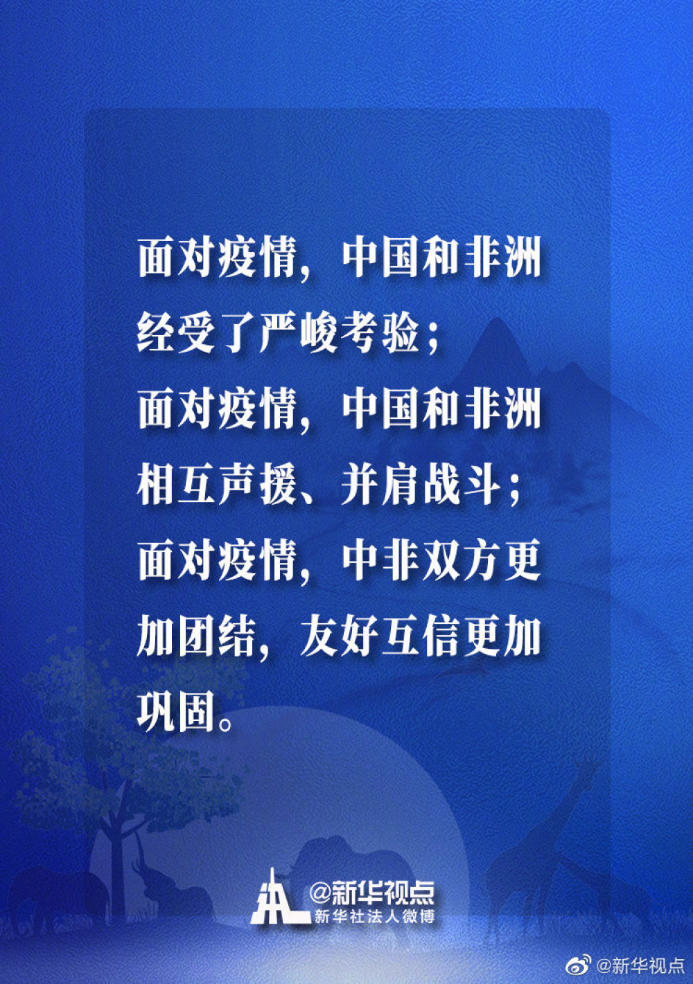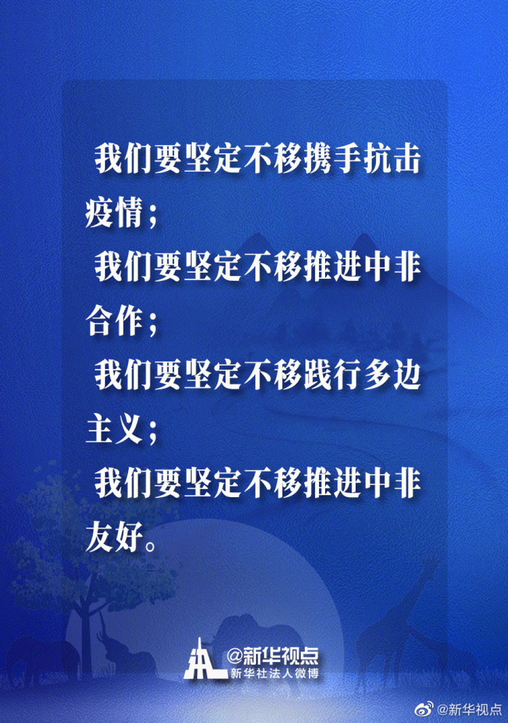 来源:新华视点微博原标题:习近平主席在中非团结抗疫特别峰会上的主旨讲话金句