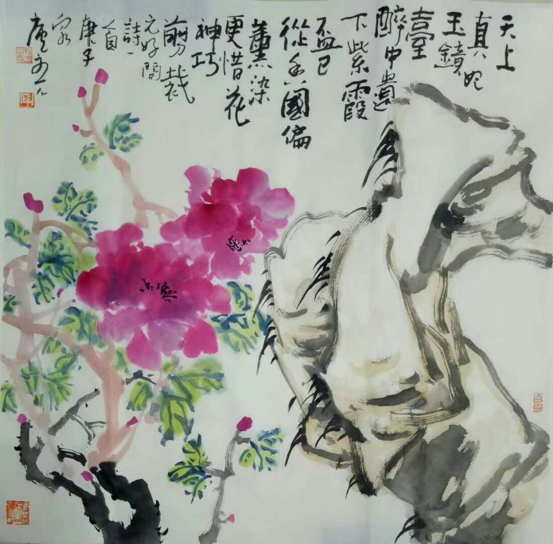 后来,偶然看到一篇文艺评论:“薛根深用笔老辣,用墨大胆,用色奔放,构思精奇,自成一家。他的画简约大气,老干横斜,一挥而就,雅致天成,毫无媚俗妖艳之态,唯有清新自然之感。”我深以为然,伫立心中多年的那棵 “树”,已经巨木参天,叶茂枝繁。