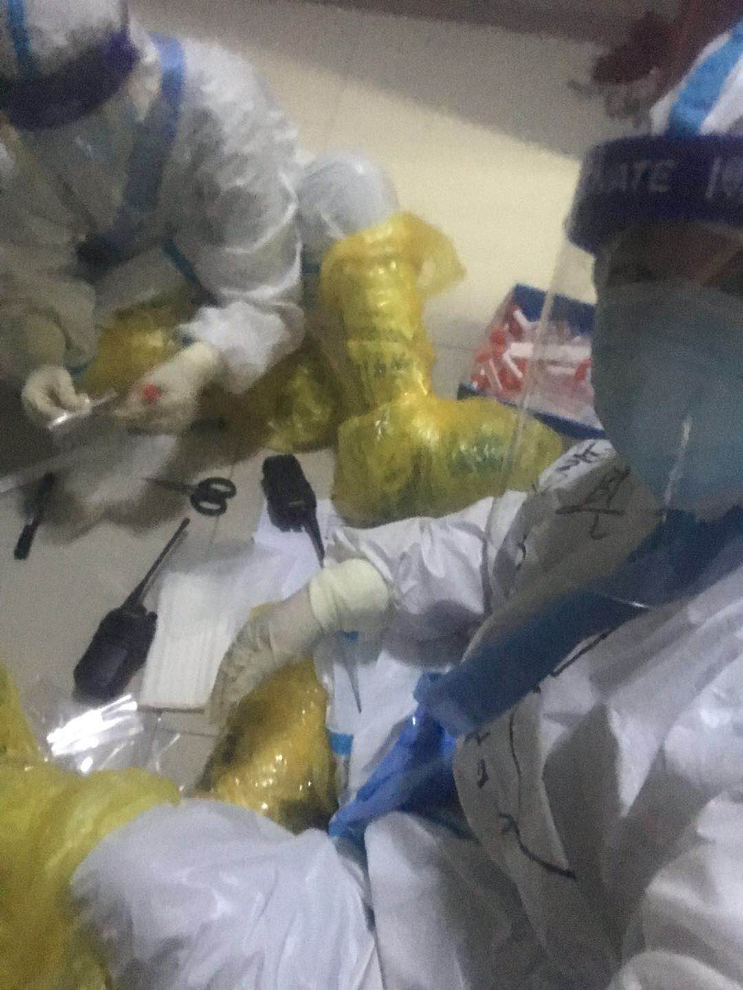 作为医疗队里最小的一员,周红却一点也不娇气,干起活来十分麻利。25日,她一个下午班就和队友采了79个咽拭子标本。