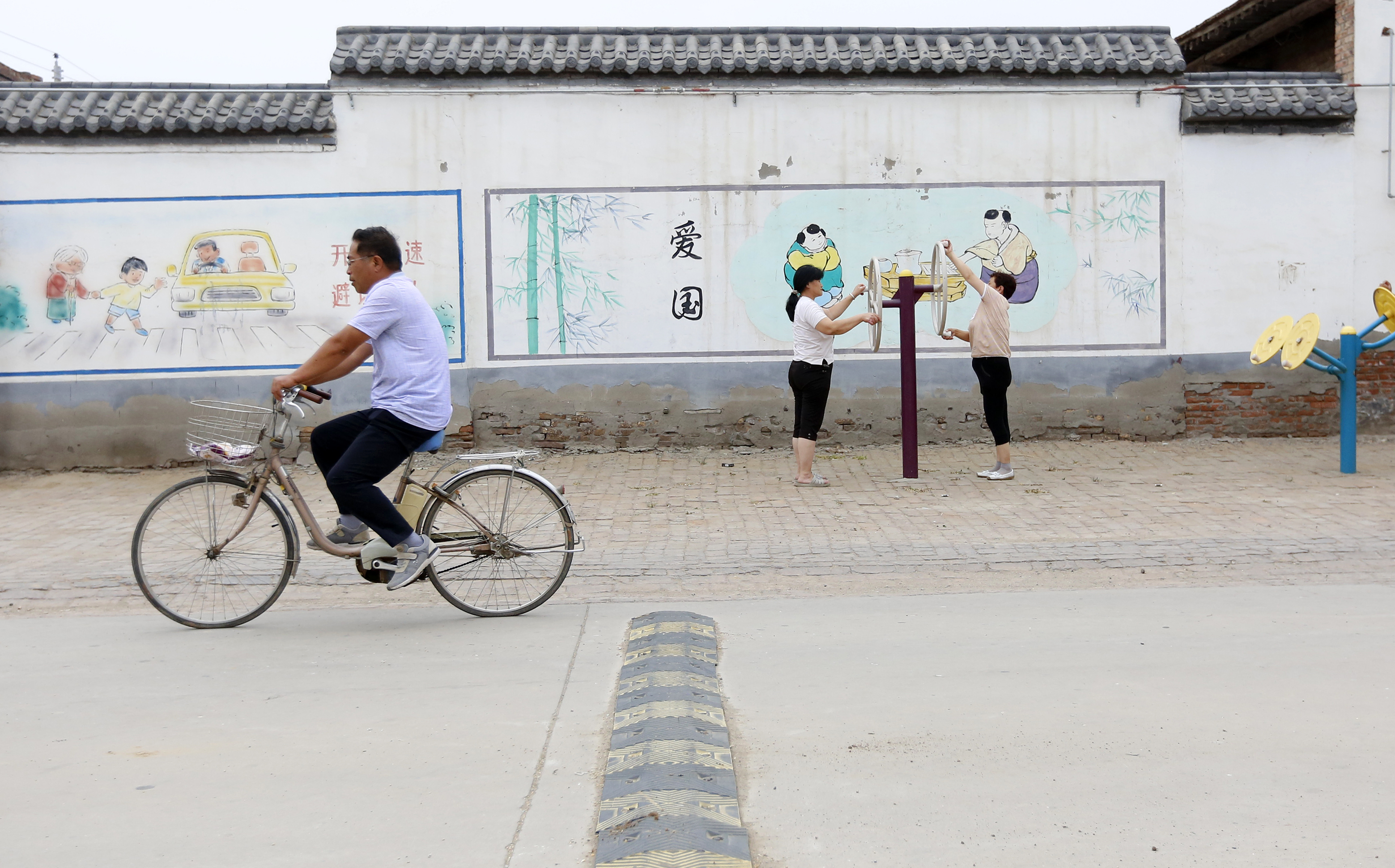 深州市高古庄镇崔家村,村民在休闲广场健身。
