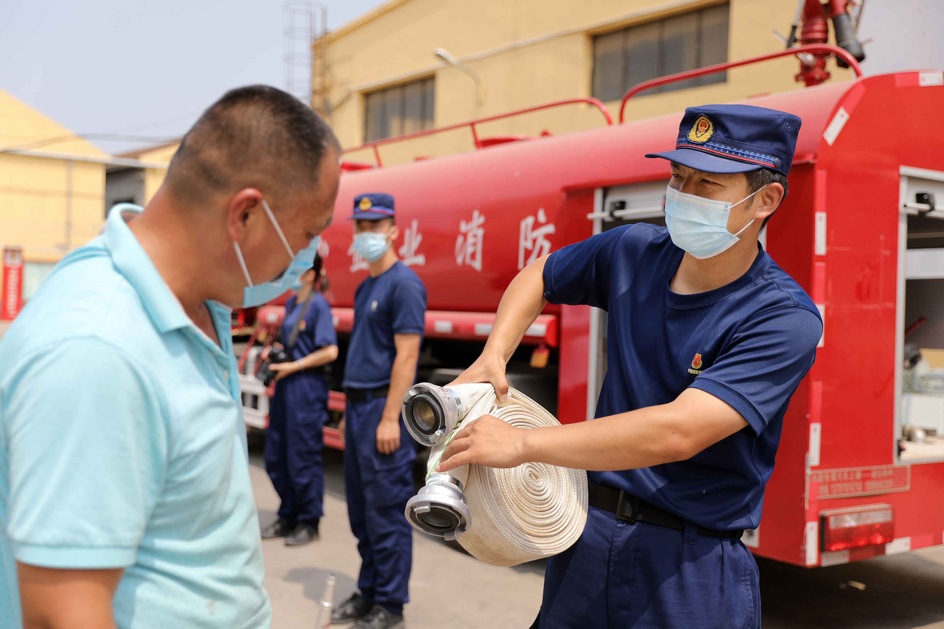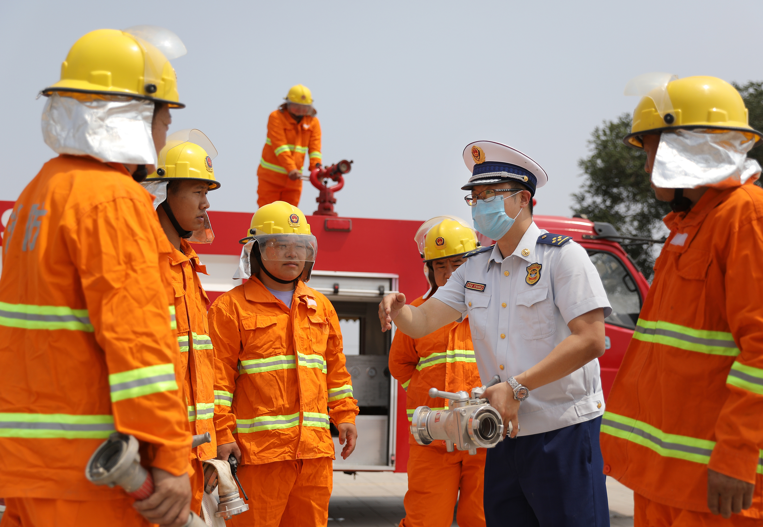 7月1日,衡水市滨湖新区消防救援大队工作人员指导魏家屯镇于家庄村志愿消防队队员进行消防演练。