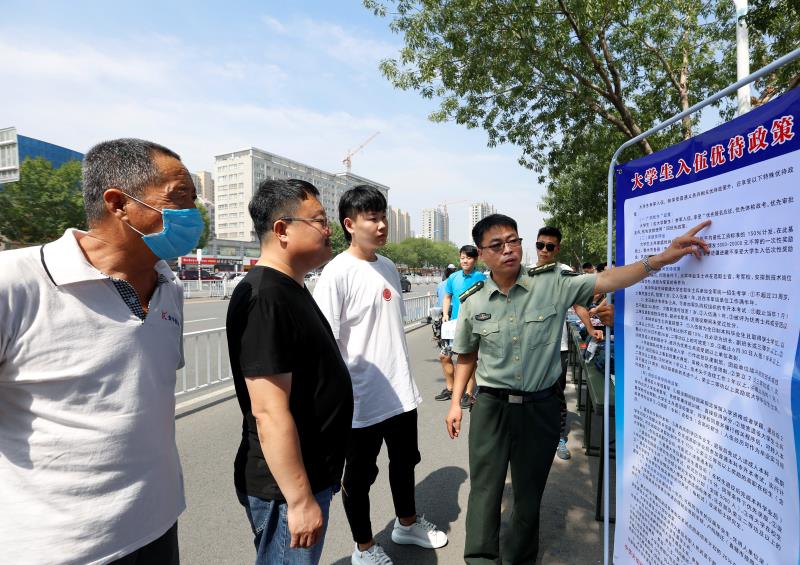 桃城区中华大街办事处工作人员为市民讲解入伍相关政策。