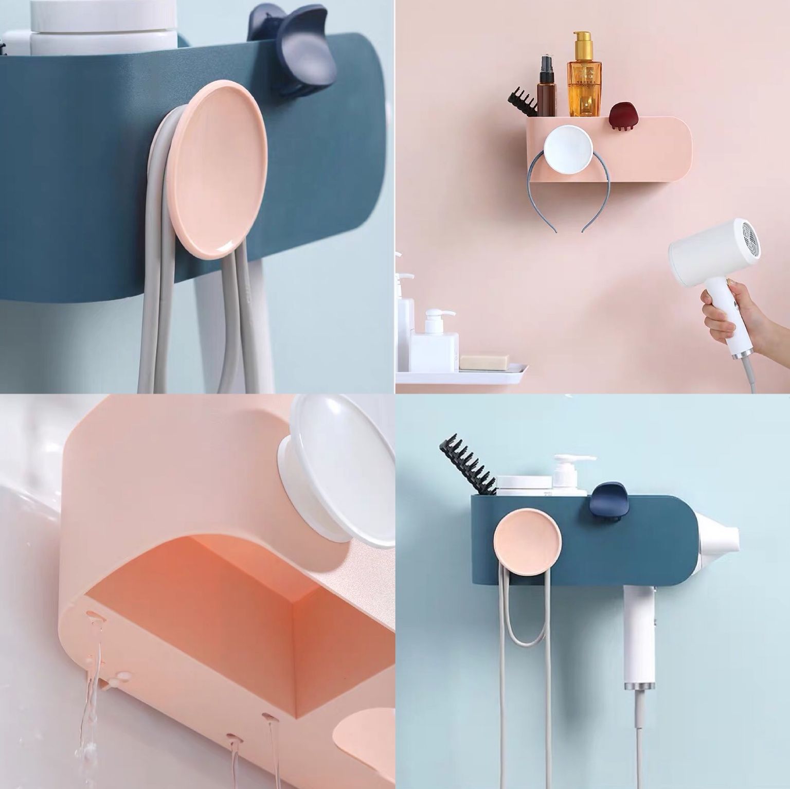 吹风机、梳子、发卡……各种物件让本来面积就不大的卫生间看着非常杂乱。有了这个收纳架,吹风机可以“隐形”悬挂,就连电线都不再凌乱,其他“小零碎”也都可以各归其位。4孔沥水拒绝积水滋生细菌,免打孔直接粘贴的安装方式也省去不少麻烦。