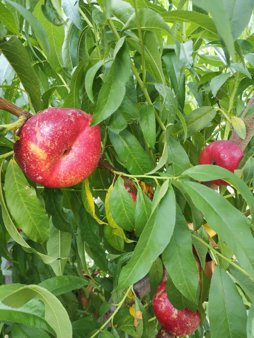 虽不如寻常桃子那样长得密密麻麻,但这里的每一个桃子都“身价不菲”。“我们这油蟠桃市场价能卖到每市斤二三十元,已经全部被深圳、沈阳等地的大型超市预定了。”园区负责人——宏垚果品种植有限公司总经理刘小勋介绍,他们选种的这种大果型品种口感脆甜、香味浓郁、便于储存,大个的能有400克重,而且含糖量比蜜桃还高,“不夸张地说,吃完一个,这手上都发黏。”