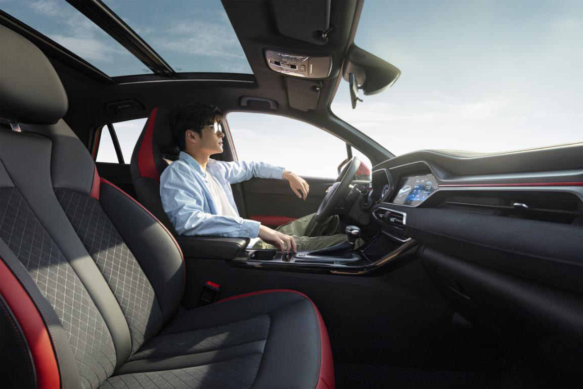 再来看看内饰设计,传祺GS4 COUPE采用光棱双星仪表台设计,以X型元素为灵感,搭配双12.3英寸高清液晶屏,内饰瞬间变得高级且个性十足,尤其是红黑混搭的炫酷配色与一体式赛车麂皮座椅搭配,把运动基因展现无遗,充满了年轻的气息,极大地吸引着年轻消费者的眼球。