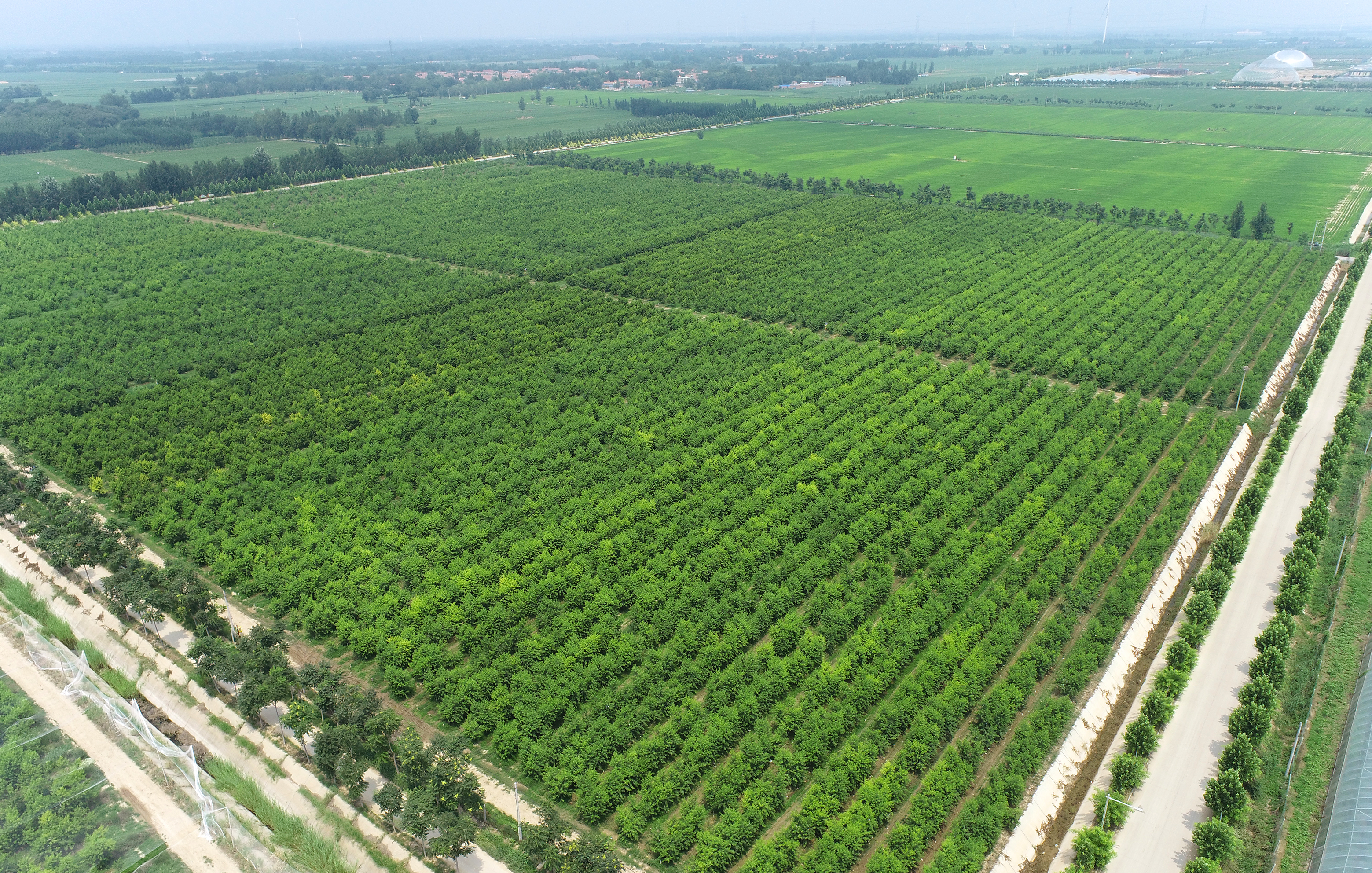 衡水市故城县东大洼现代农业园区梅颂园蟠桃种植园。(无人机照片)