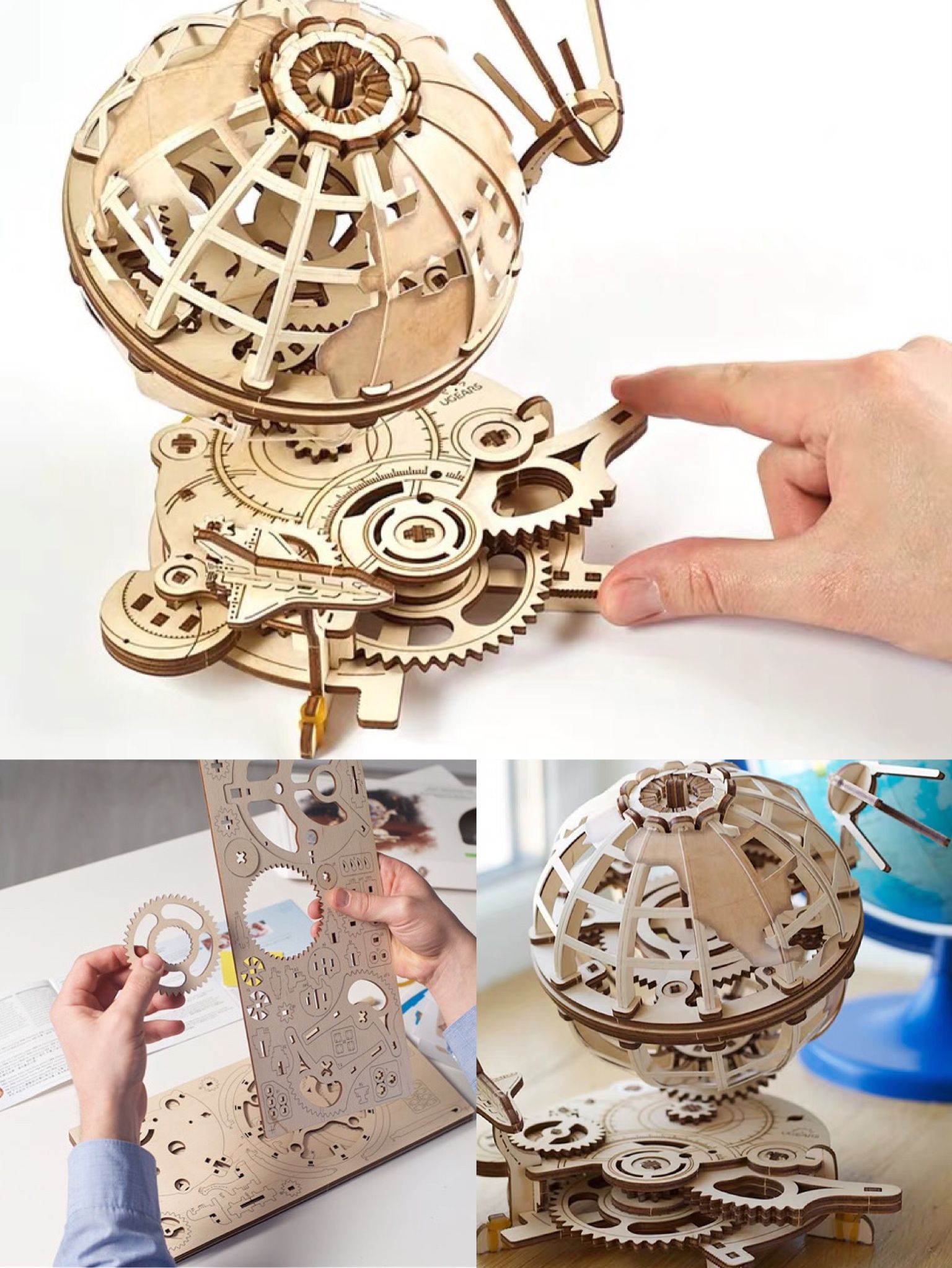 考完试终于有时间琢磨自己喜欢的事情了,这款木质机械地球仪模型是喜欢宅家的“研究型”孩子的心头好。橡皮筋的动力让地球自转,还可以手动控制转速。轨道上的卫星和航天飞机则通过行星轮装置,以更高的速度围绕地球旋转。砂纸、小木槌、撬棒⋯⋯自己动手,通过齿轮运转让地球仪动起来,学与玩真心是一对“黄金CP”。