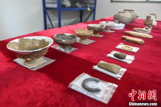 7月14日,从广东省广州市中新知识城北起步区马头庄先秦遗址发掘出的部分文物。
