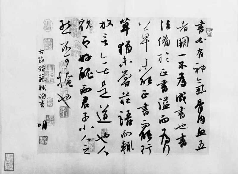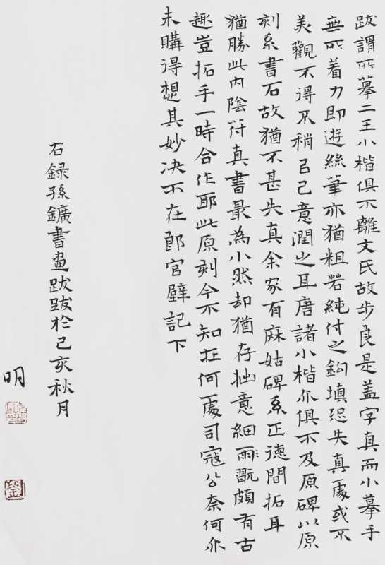 高考完的那个暑假,19岁的伟明拿到了河北省书协会员资格,“拿起毛笔来能把字写飞,骄傲得连走路都是飘的”。看出他的“得意”,张占军把伟明叫到工作室,拿着伟明近期的习作,一个字一个字挑毛病。“那是我印象中,张老师唯一一次对我的批评多余表扬”,伟明说,他现在清楚记得张老师说过的每一个字,“张老师说:‘楷书无非就是结构和笔法,你现在结构不准,笔法不精,还能剩下什么?一天天走路都飘,这样以后怎么有大出息?’”说完后,又给他详细讲解练字的方法对策,伟明听后如梦方醒,明白了心如止水,书无止境。