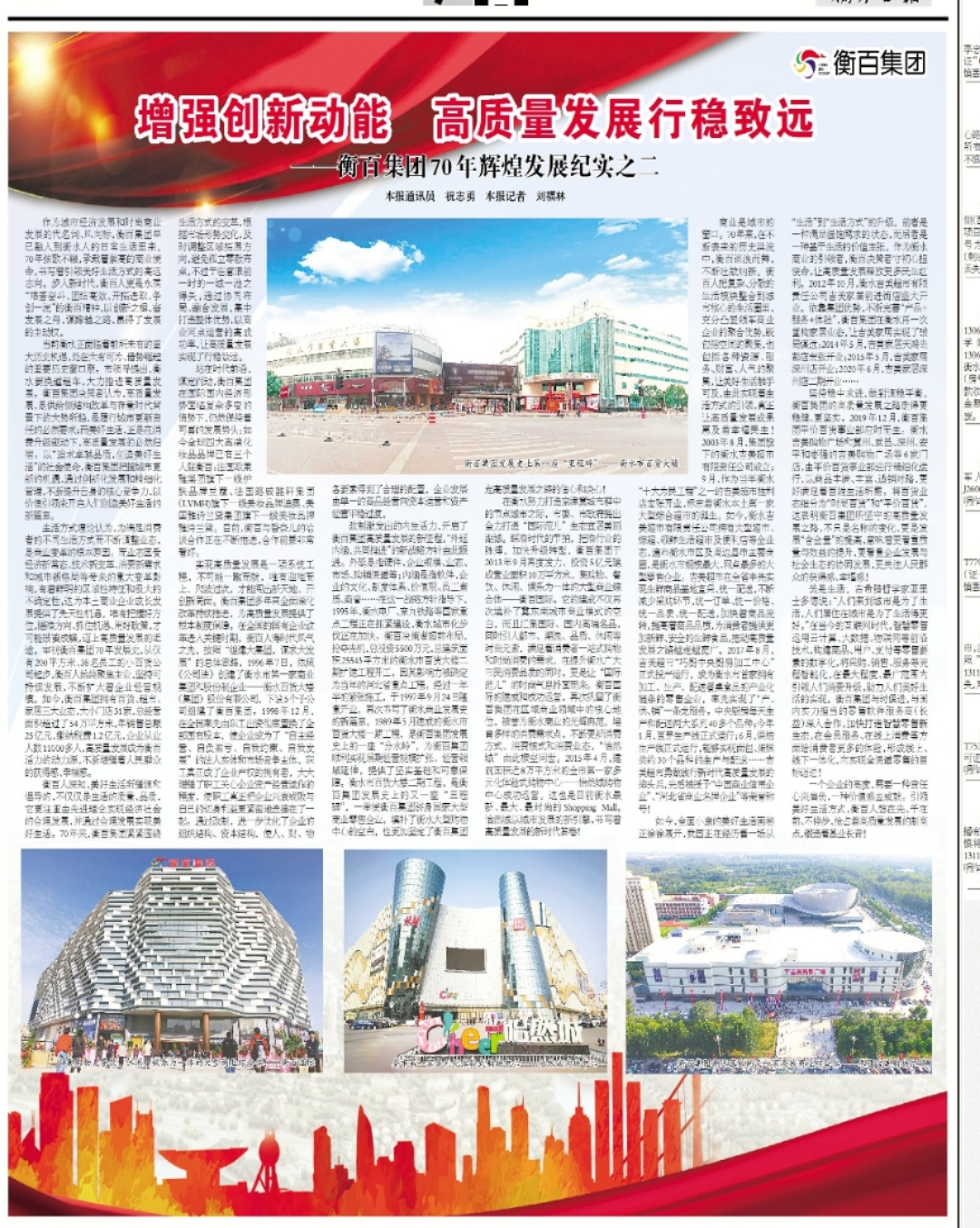 作为城市经济发展和时尚商业发展的代名词、风向标,衡百集团早已融入到衡水人的日常生活里来。70年弦歌不辍,承载着崇高的商业使命,书写着引领美好生活方式的高远志向。步入新时代,衡百人更是永葆“艰苦奋斗、团结高效、开拓进取、争创一流”的衡百精神,以创新之楫,奋发展之舟,谋跨越之路,赢得了发展的主动权。