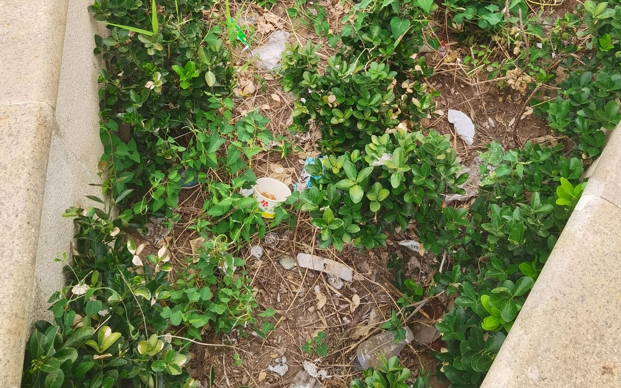 22日下午5时许,记者来到“莲年有余”景观处,一些附近的村民正在此休憩游玩。记者发现,从中湖大道主路通往景观台的台阶上铺满枯草,还有不少食品包装袋。台阶周边的绿化带里更是隐藏着塑料袋、饮料罐、餐盒等垃圾,就连景观护栏内也有冰糕袋、矿泉水瓶。除了这些随处可见的垃圾外,记者还发现多处照明灯的电线裸露在外,存在安全隐患。